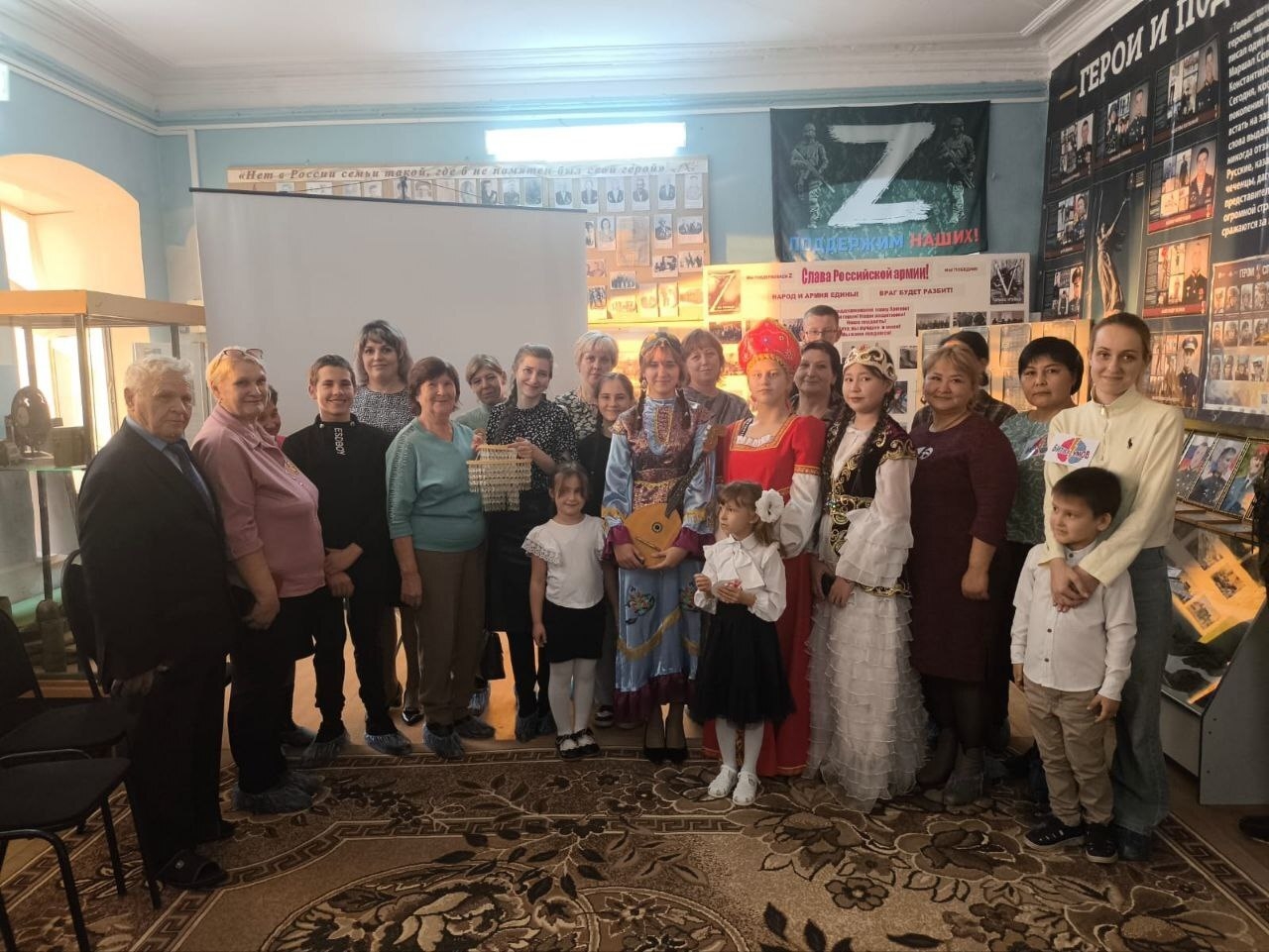Необычную вечернюю музейную экскурсию открыла танцевальная композиция «Вперед, Россия!», которую исполнили воспитанники детского сада «Карусель». Гости, в числе которых были семьи погибших героев-земляков СВО, окунулись в атмосферу межкультурного диалога: представители различных национальностей района поделились историями о культуре, обычаях и быте своих народов.