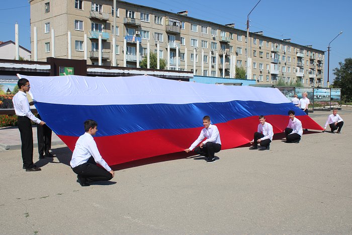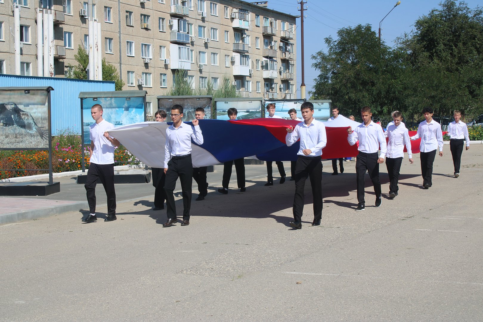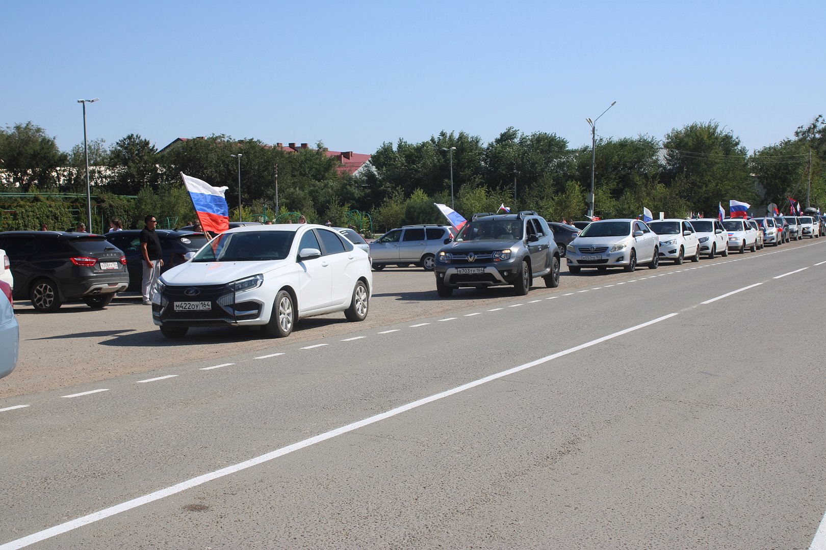 В знак уважения и гордости перед зданием РДК школьники растянули многометровое полотнище российского триколора. Десятки машин с развивающимися флагами нашей страны отправились в почётный круг по центральным улицам Александров Гая.