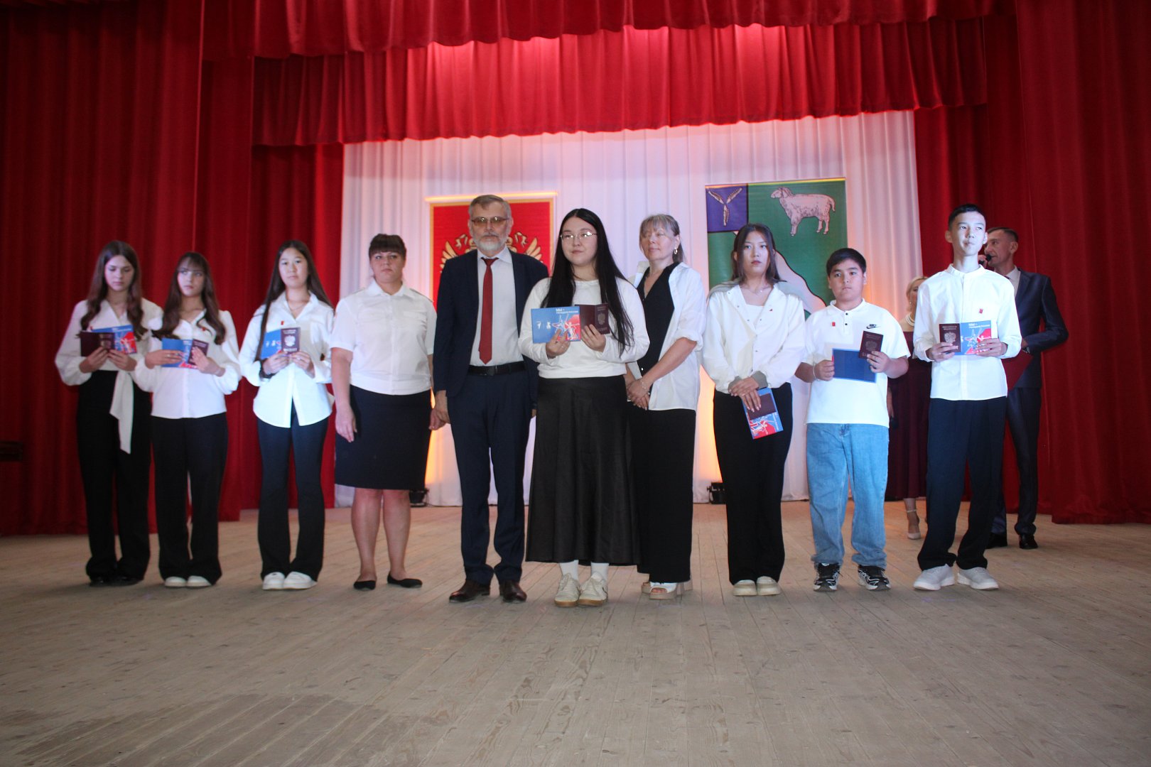 Символично, что в рамках Всероссийской акции «Мы —граждане России» в новый важный этап в жизни вступили молодые жители района: Лаура Ашакова, Санжар Бакаев, Марлен Гельманов, Динара Жанаева, Екатерина Калдузова, Анна Кирьянова и Индира Кадралиева получили свои первые паспорта.