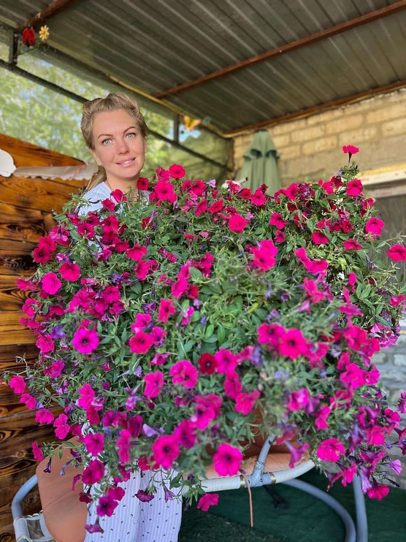 - Получилось вырастить столько цветов, потому что мне удалось «подружиться» с вегетативной петунией. Я купила несколько кустиков у Гули Тугушевой (известный в районе цветовод - авт.) и размножила их с помощью черенкования. Конечно, это трудоёмко, но практика показала, что намного продуктивнее. Вырастить, к примеру, Тайдал и Изи Вейв из семян не так уж и просто: сеянцы на этапе «семидольных листков» очень капризны. К слову сказать, практика показала: чем свежее семена, тем лучше всхожесть растения. Так что на посадку лучше брать семена этого года. Впрочем, эти цветы на протяжении всего сезона требуют ухода. Правильный полив, обрезка, постоянная подкормка, мне кажется, петуния - самый прожорливый цветок, солнечный свет - условия, при которых они будут радовать вас весь сезон, - делится секретами ухода за цветами наша участница конкурса.