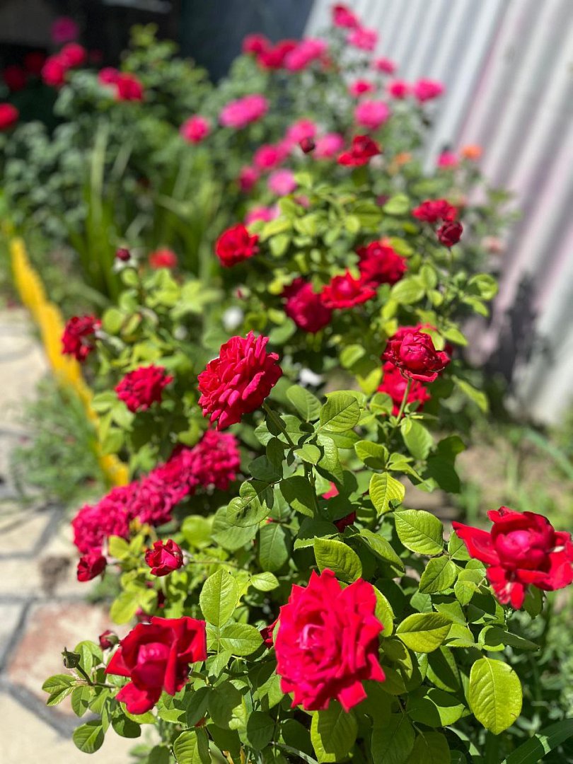 Подчёркивают стильность двора многочисленные обильно цветущие кусты роз. Пышные бутоны королевы цветов - тоже результат непрестанной заботы хозяйки за кустарником.