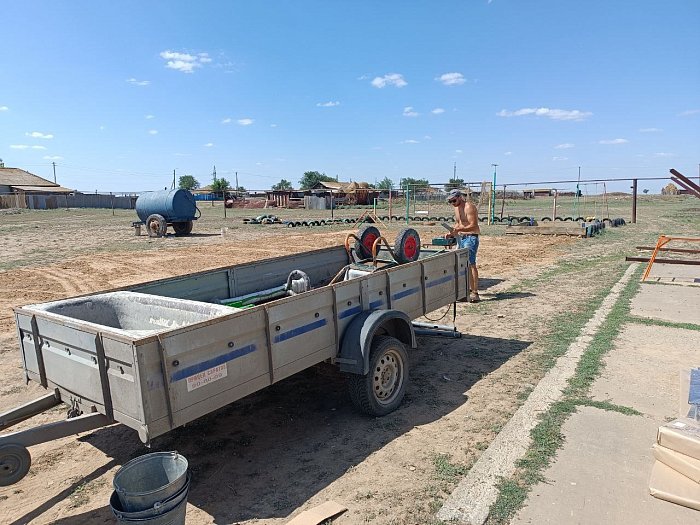 В настоящее время силами местных жителей обустроено песчаное основание площадки, ведётся установка игровых элементов.