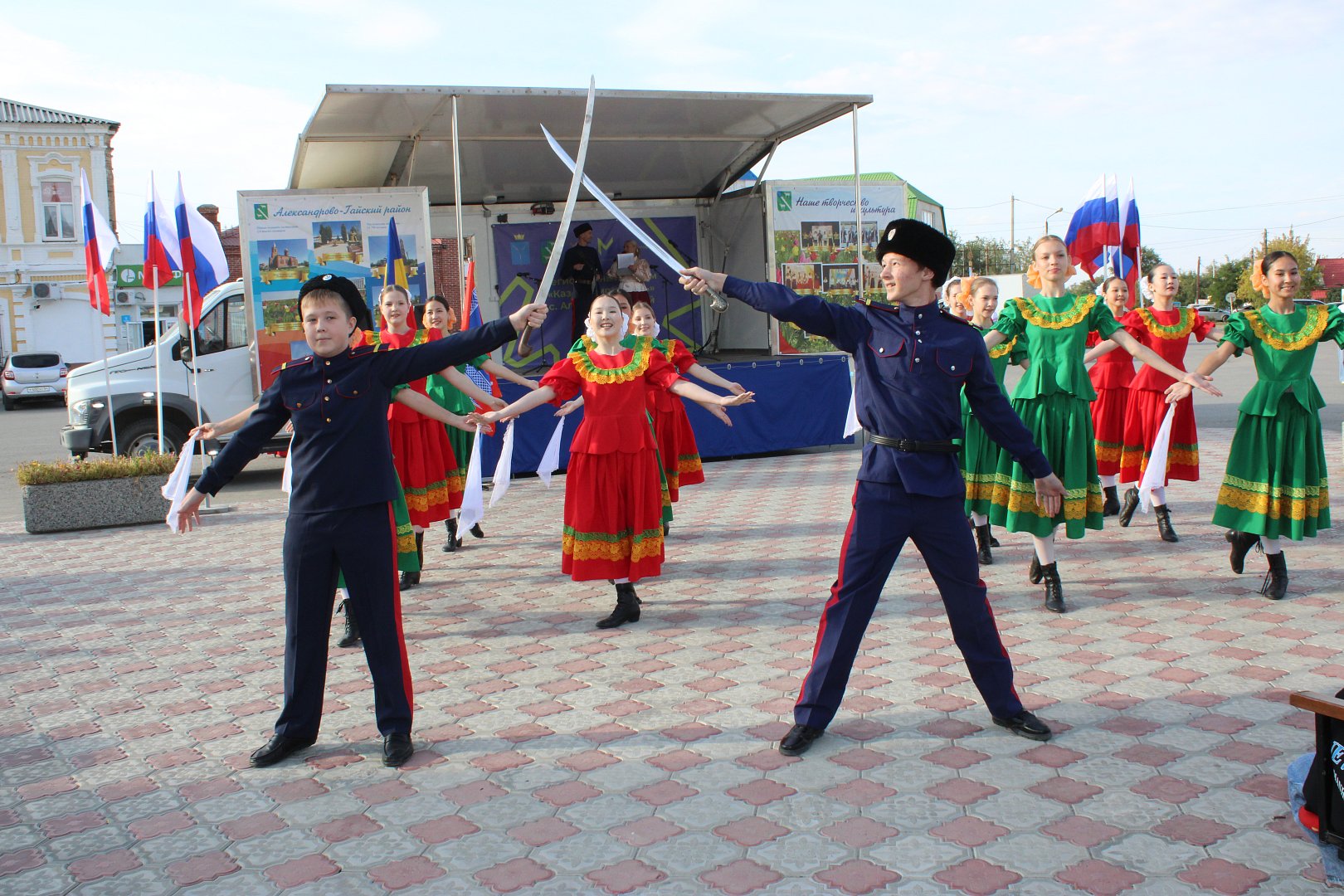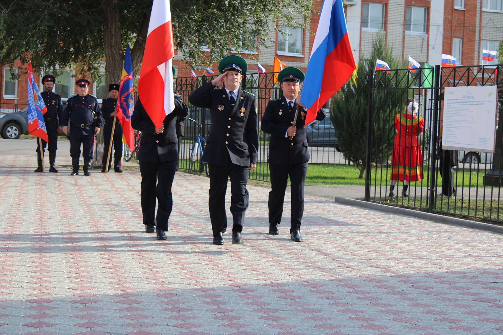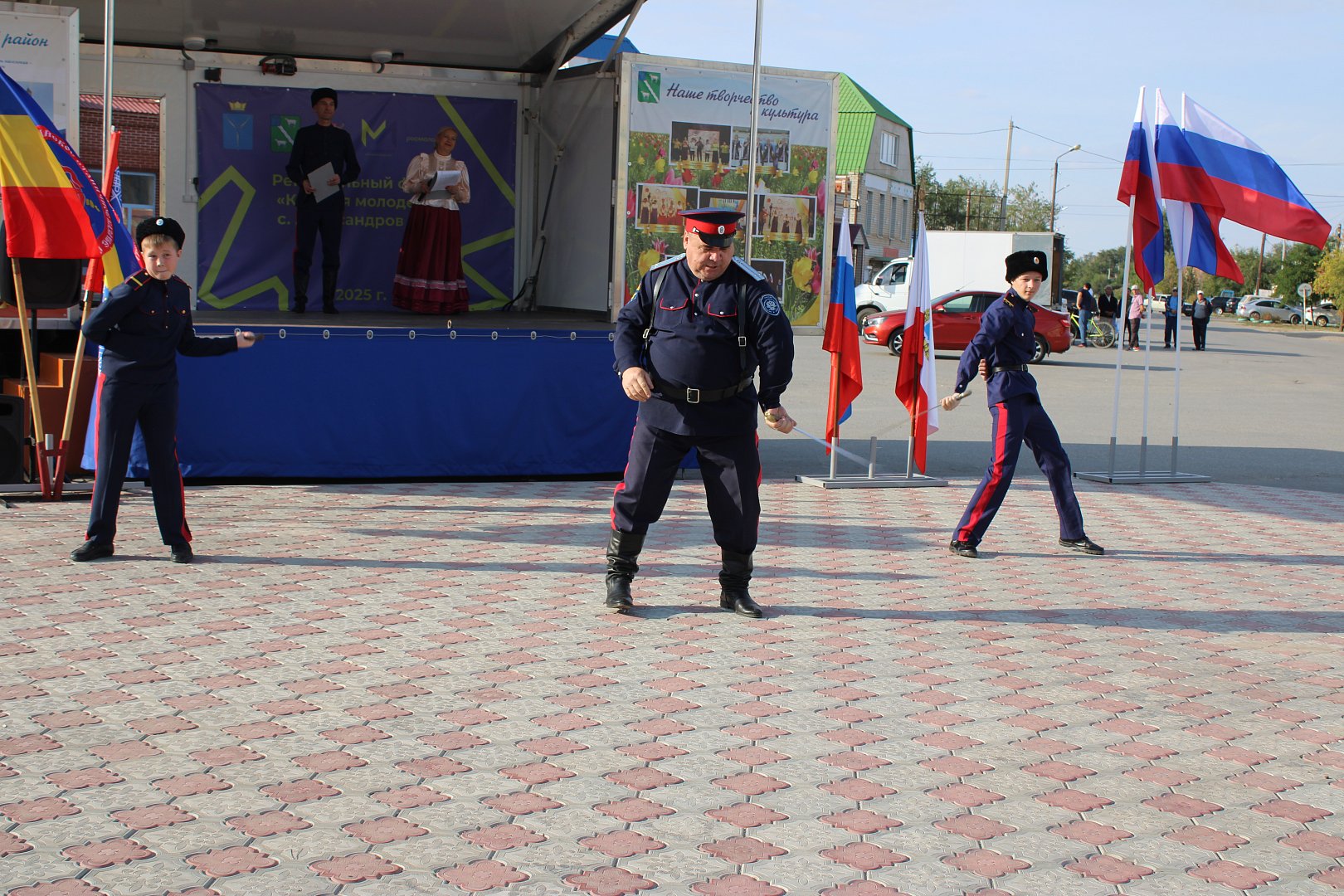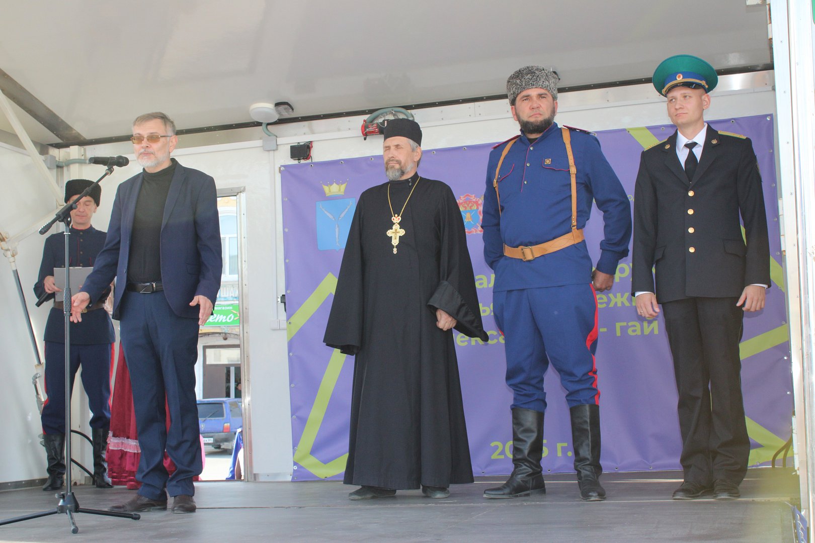 Торжественность мероприятию придала церемония внесения флага Российской Федерации и флага Саратовской области представителями пограничной заставы села Александров Гай. Затем были внесены флаги Волжского Казачьего Общества и Александрово-Гайского хуторского казачьего общества.