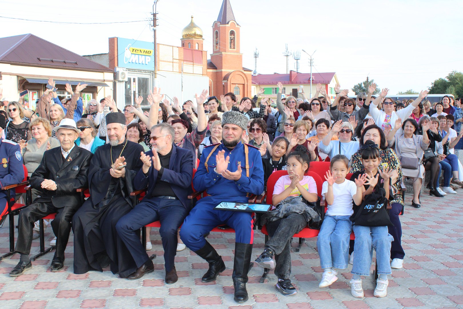 Площадь Дома культуры «Маяк» стала местом сбора участников форума. После молитвы в местном храме Казанской иконы Божьей Матери делегации собрались здесь, чтобы окунуться в атмосферу праздника и ощутить дух казачьей истории. Делегации традиционно встретили хлебом-солью.