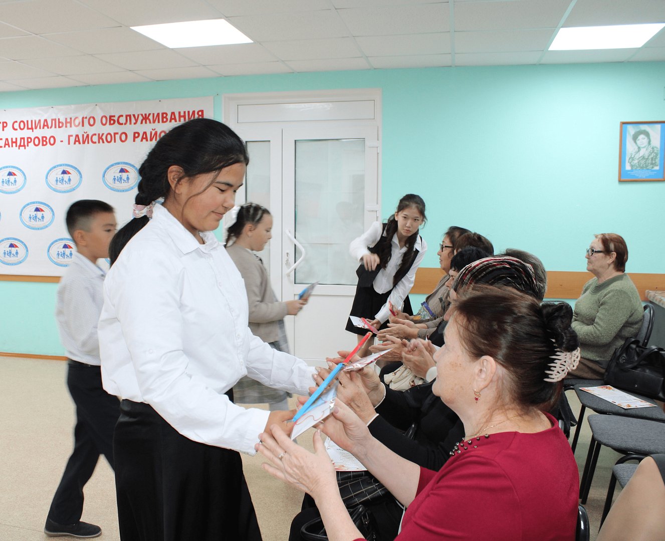 В Центре социального обслуживания населения Александрово-Гайского района прошло праздничное мероприятие, посвящённое сельским женщинам. Организатором стала специалист отделения срочного социального обслуживания КЦСОН Нурия Жунусова, которая подготовила тёплые поздравления для подопечных из села Камышки.Учениками-волонтёрами школы №2, участниками конкурса "Лучший ученический класс" была подготовлена небольшая концертная программа. Под руководством Айнагуль Бугетаевой ребята представили зрителям разнообразные творческие номера. Среди участников были и младшие школьники - Еркебулан Жуманьязов и Полина Фёдорова, чьи выступления очаровали всех присутствующих своей искренностью и непосредственностью.
