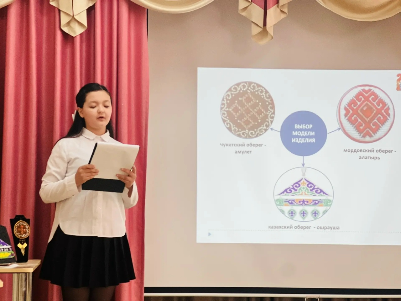 Вот лишь некоторые из работ: проект «Обереги», рассказывающий о древних традициях защиты жилища; работа «Сердце России: вместе мы сила», выражающая единство проживающих в России народов; увлекательное исследование народных головных уборов, подчёркивающее разнообразие культурных традиций нашей страны; и выразительная коллекция войлочных изделий, воссоздающая забытые ремёсла предков.
