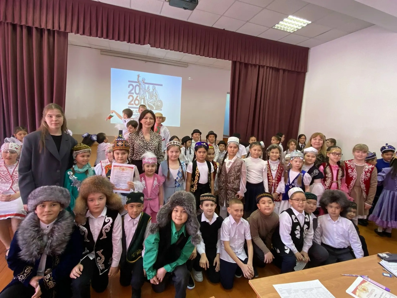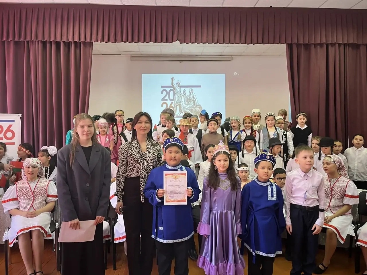 Сегодня, 26 февраля, в школе №1 состоялся первый этап фестиваля «Дружба народов», объединивший учеников 2–5 классов и посвященный Году единства народов России. Каждый класс ярко представил культуру разных народов: учащиеся продемонстрировали богатство традиций казахов, чувашей, русских, узбеков, удмуртов, евреев, азербайджанцев, та-тар, белорусов и молдаван. Самобытность каждой национальности проявилась в ярких ко-стюмах, созданных родителями, народных песнях и танцах, исполненных учениками.