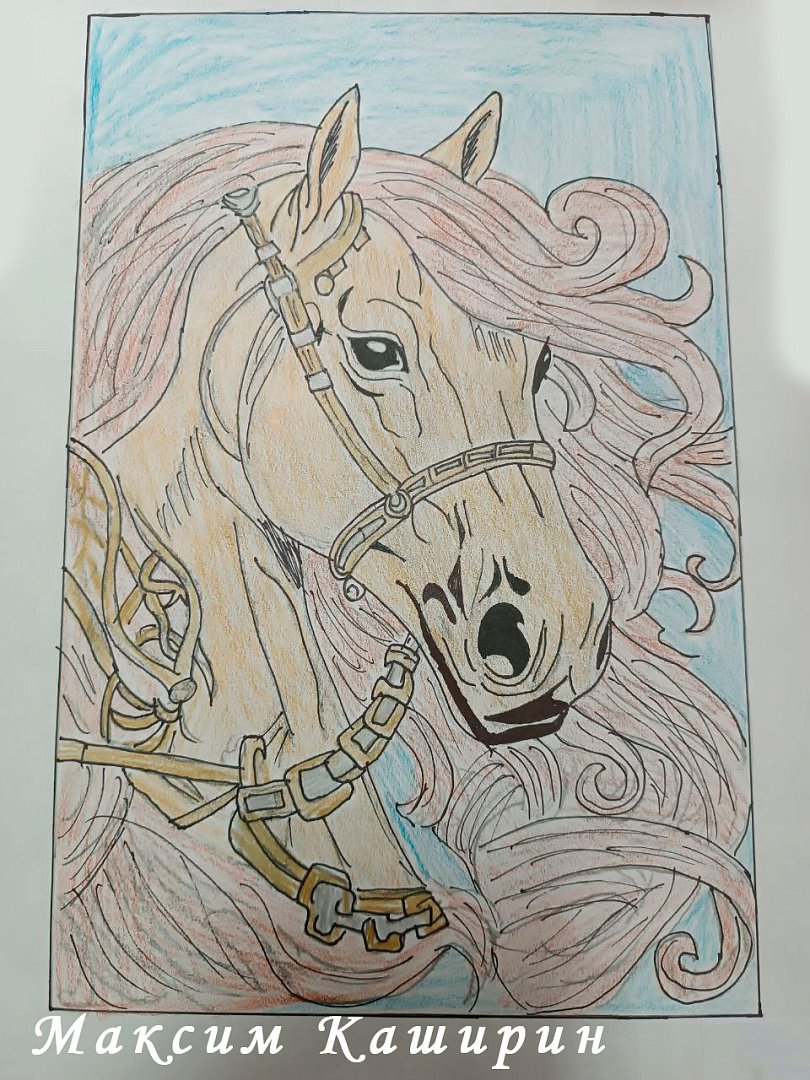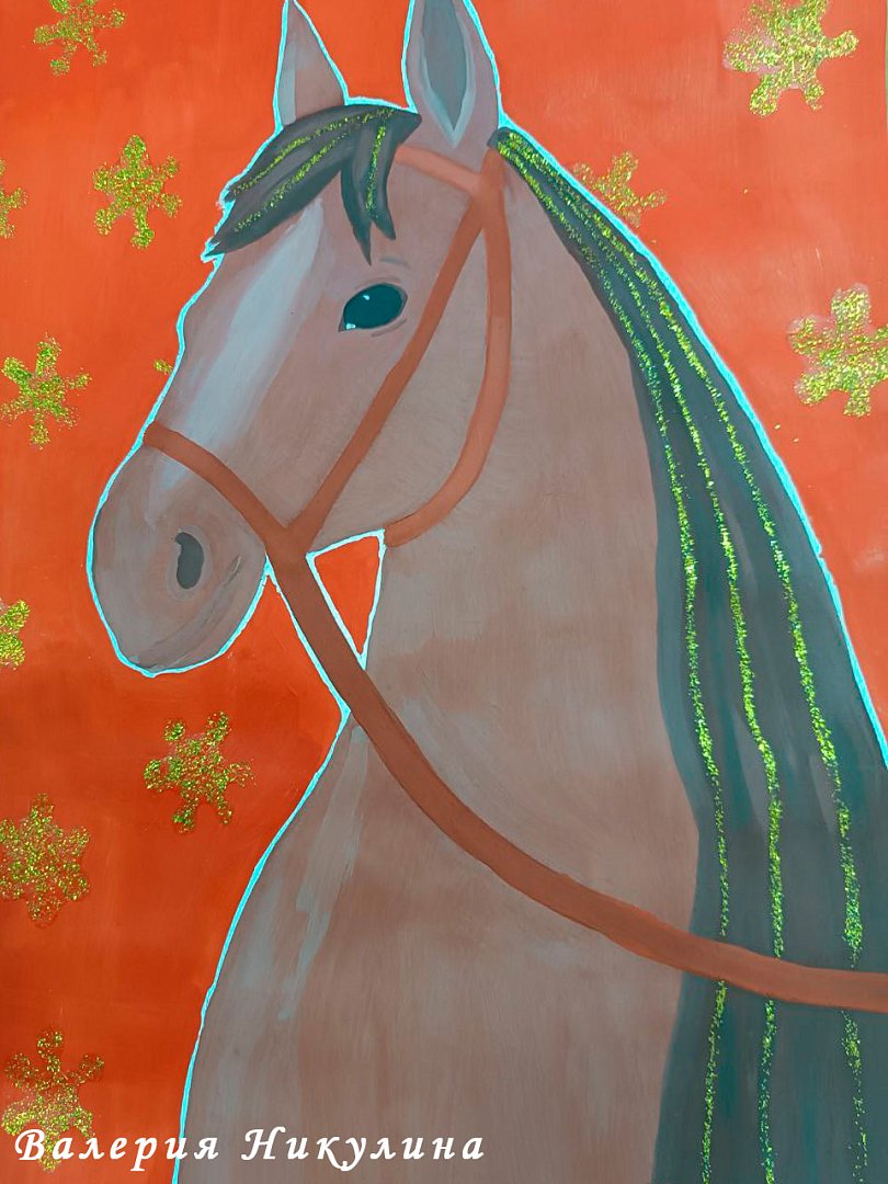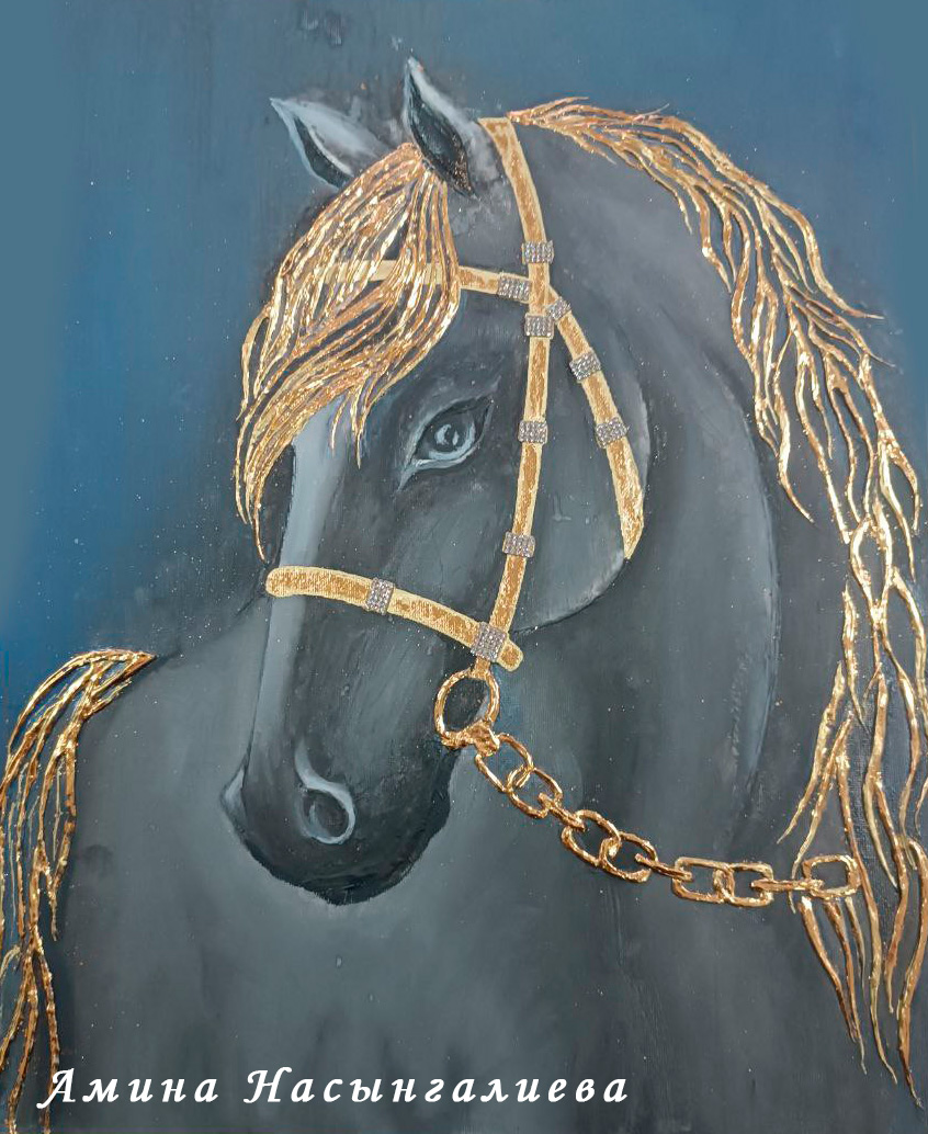- Восьмиклассницу Амину Насынгалиеву. Загадочная, утонченная и грациозная темно-серая лошадь с золотой гривой, нарисованная воспитанницей ЦДТ, стала безусловным лидером для всего коллектива;
