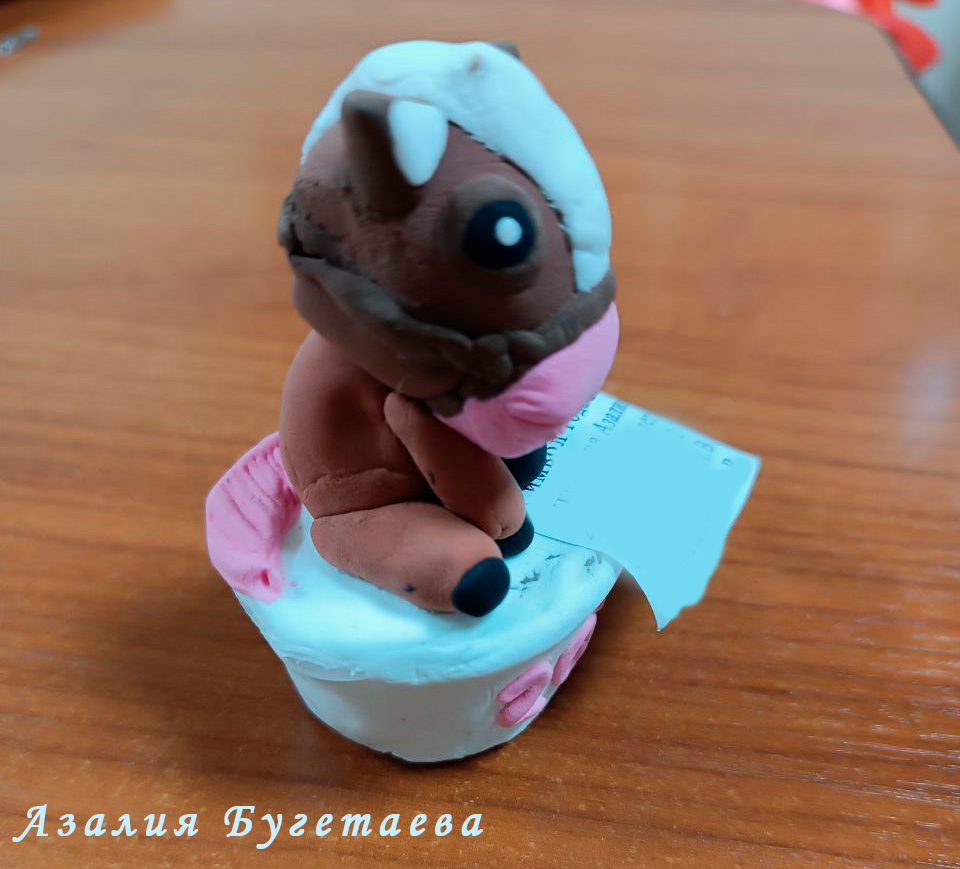 - Азалию Бугетаеву из школы №2. Её очаровательная крошечная лошадка, слепленная из воздушного пластилина, с лёгкостью поместится на детской ладошке;