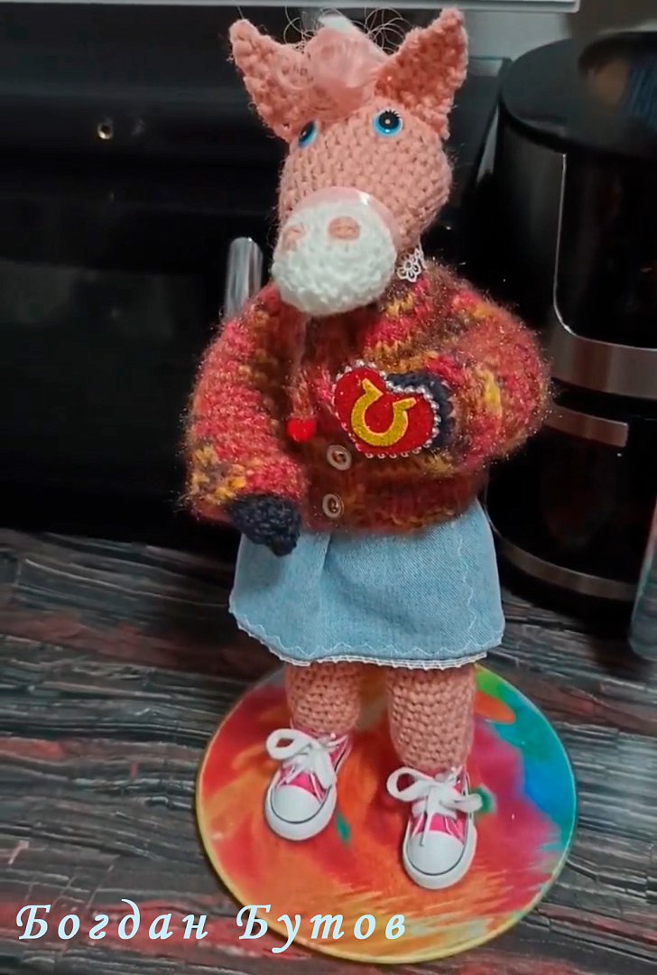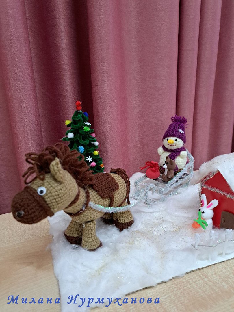 - Семью Богдана Бутова (детский сад «Карусель»). Вязаная фигурка лошади с подковой на удачу подкупает яркостью и заряжает позитивом;