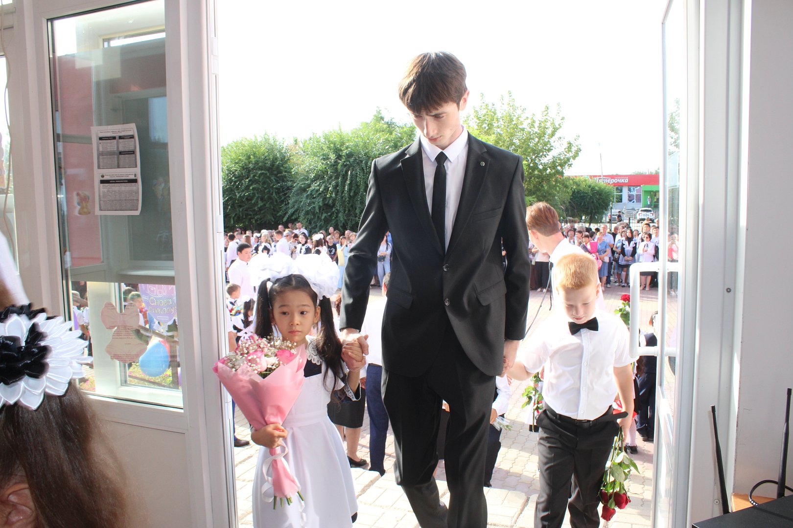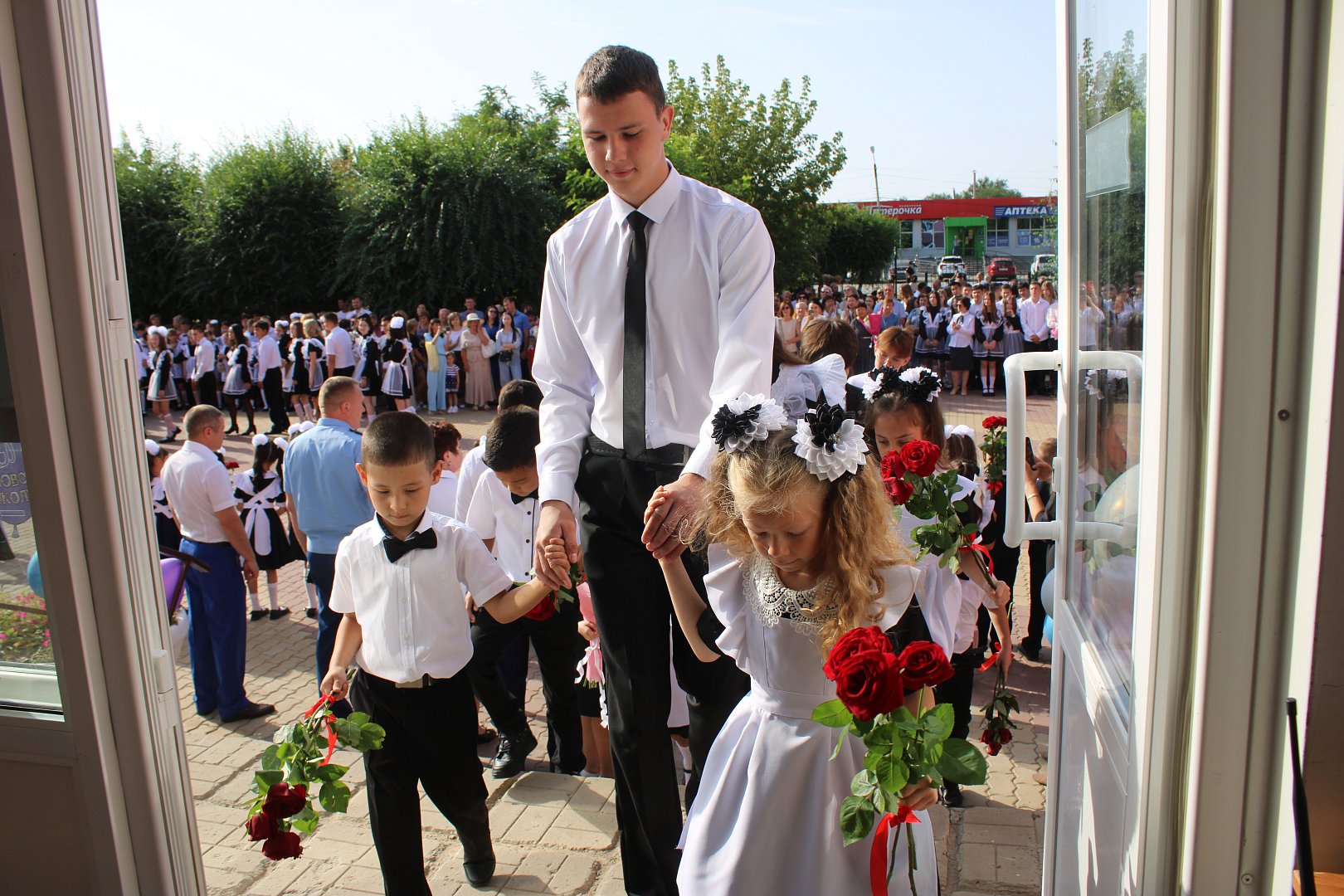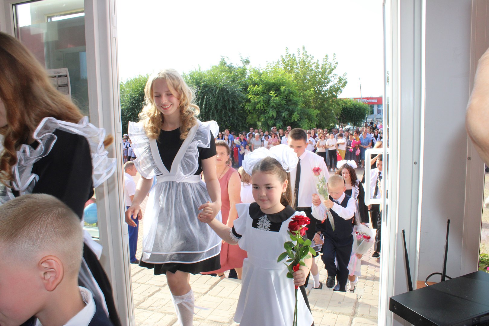 Первыми робкими шагами пересекли школьный порог первоклашки, крепко держась за руки своих старших товарищей — одиннадцатиклассников.