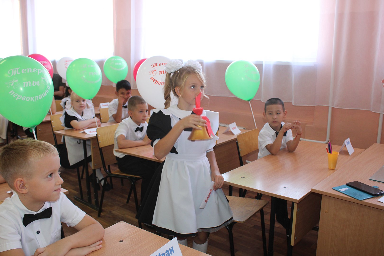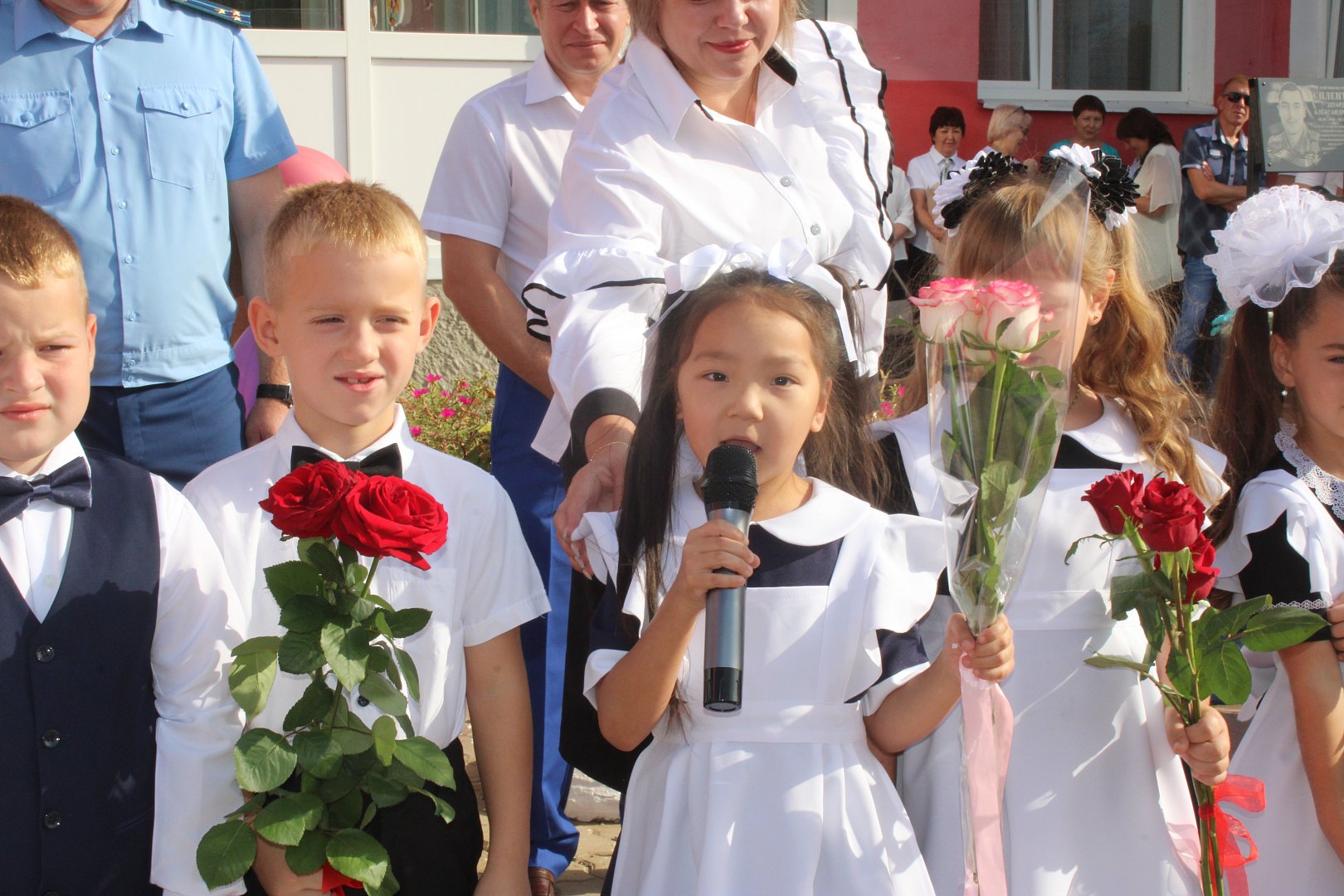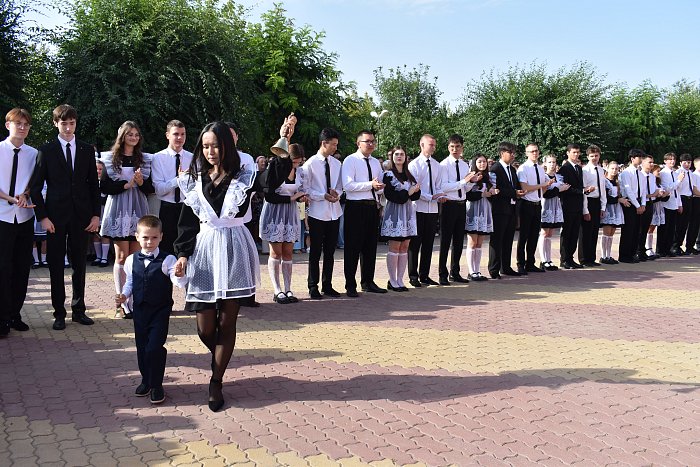 Самым волнующим моментом стал перелив колокольчиков, знаменующий о начале учебного года. Первый звонок дали ученица 11 «Б» класса Аида Кулаканова и ученик 1 «А» класса Андрей Жданов.
