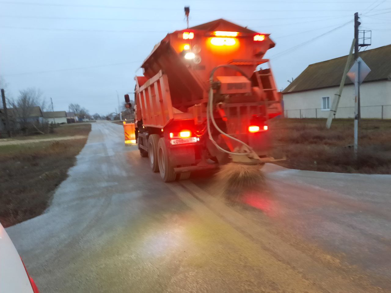 Продолжается обработка дорожного покрытия песко-соляной смесью: за указанный период на обработку дорог было использовано в общем более 550 тонн реагентов.