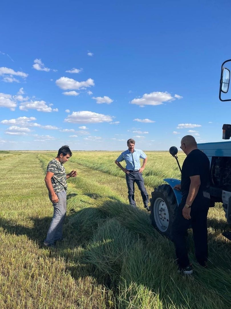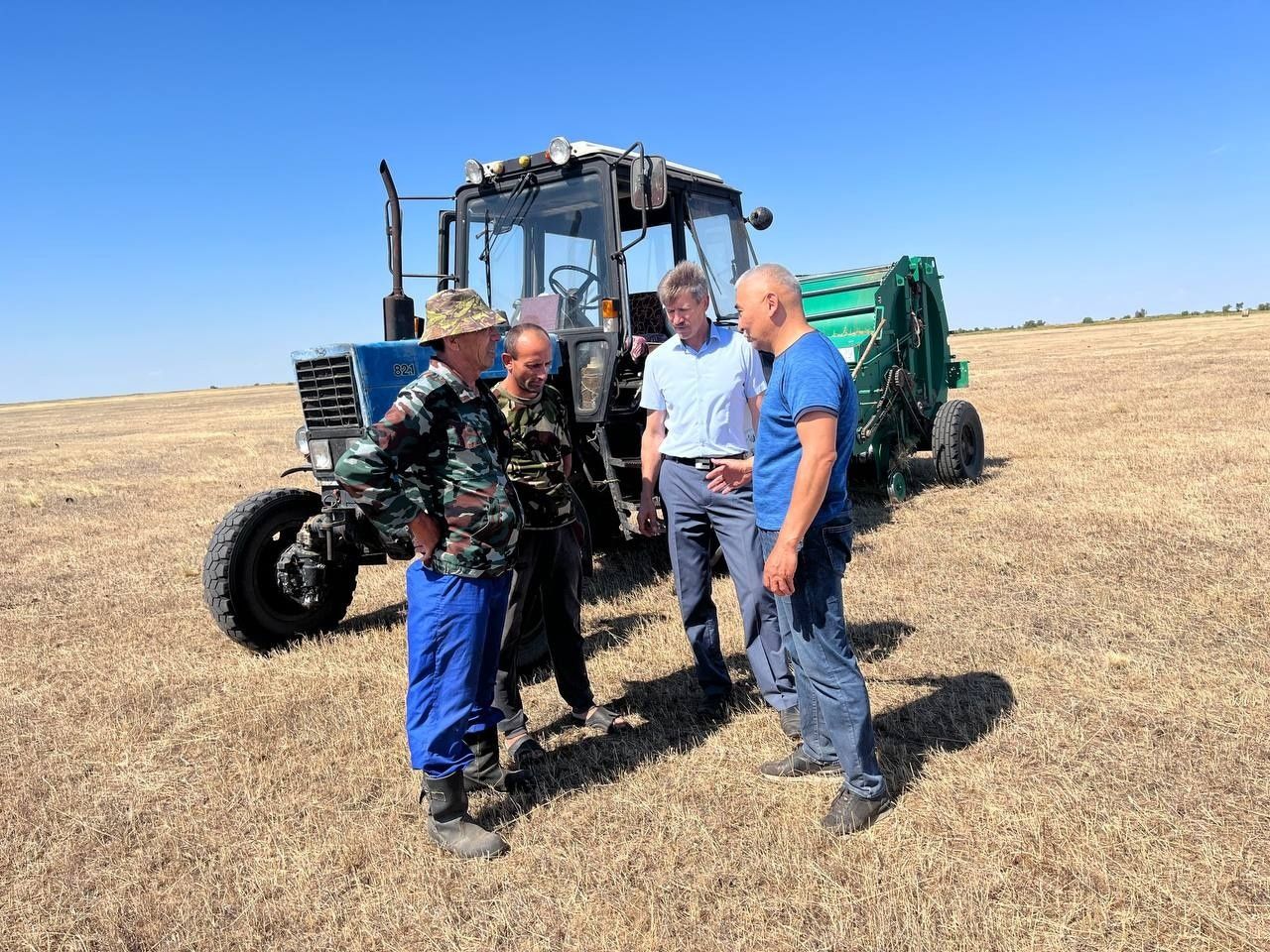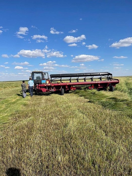 Так, полным ходом идёт заготовка сена в КФХ Кайыргазы Султашева. Бригада механизаторов из числа крупных и крепких хозяйств района (в КФХ насчитывается более 1000 голов КРС) сейчас ведёт уборку на лиманных угодьях, где с гектара собирают всего 6-7 ц/га грубых кормов. По словам главы КФХ, это неожидаемо низкий результат при том, что паводковыми водами было залито 2000 га орошаемых угодий. Низкие показатели - следствие майских морозов и аномально жаркого июня, отсутствие осадков в этот месяц.