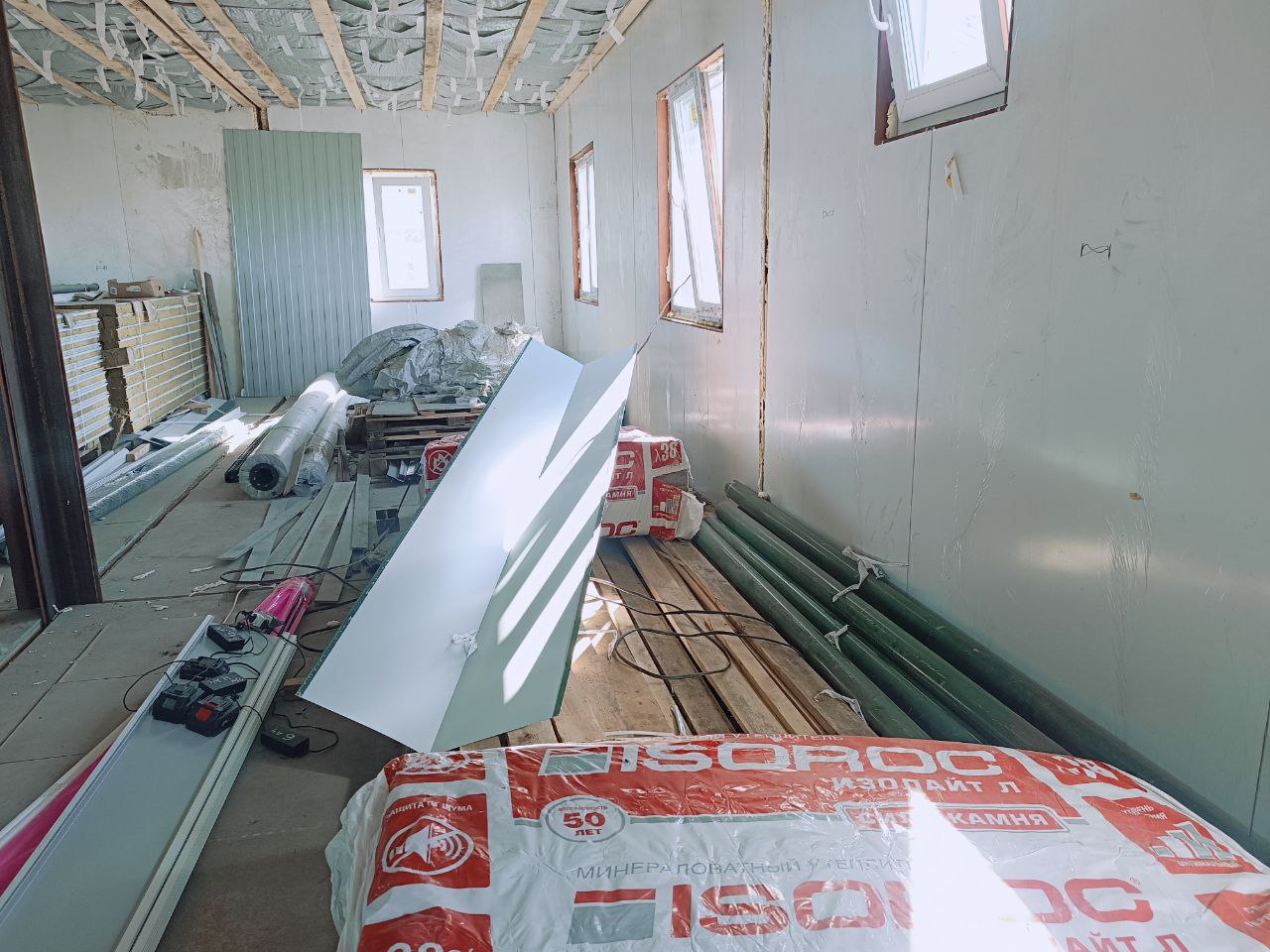 Новый модуль уже установлен, с окнами, крышей, входной группой. К зданию, стоящему на сваях, подключены необходимые инженерные системы: электроснабжение, водоснабжение и канализация. Площадь ФАПа по внешнему периметру составляет 90 кв. м., полезная площадь внутри — 82-85 кв. м.