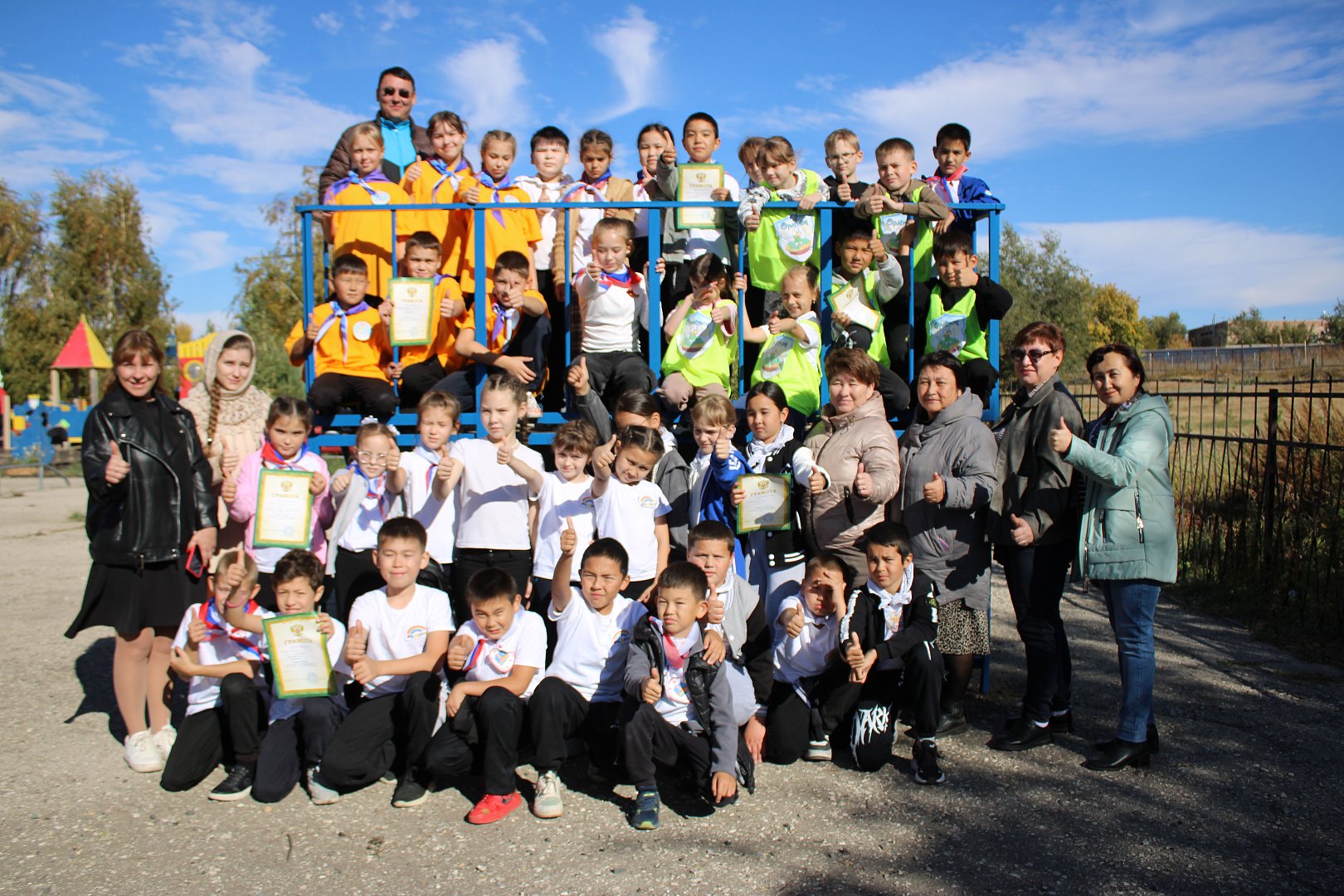 1 место заняла команда школы №3 «Дружная семейка» (руководители З.Г. Маненов и С.В. Жданова), на втором мете – «Орлёнок» из школы №1 (руководители А.А. Субакова и М.А. Трубиленко), замкнула призовую тройку команда «Радуга» из школы пос. Приузенский (руководители Б.У. Абукенова и Г.А. Таушанова).