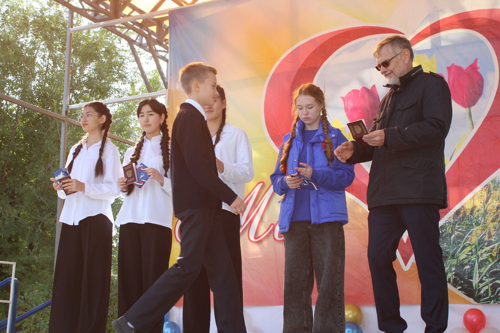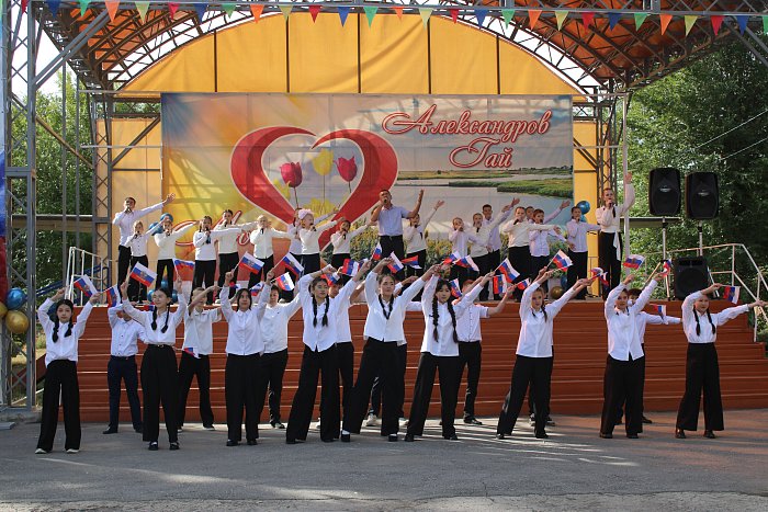 Затем действо перенеслось на главную сцену парка, где глава района Сергей Зюзин тепло поблагодарил жителей, отметив вклад каждого в развитие и процветание района. После награждения передовиков и вручения паспортов юным гражданам России, последовали поздравления от председателя местного отделения общества «Союз женщин России» Марии Поперечневой, настоятеля храма Иконы Казанской Божьей Матери протоиерея Сергия и имама Александрово-Гайской мечети Серикбая хазрата.
