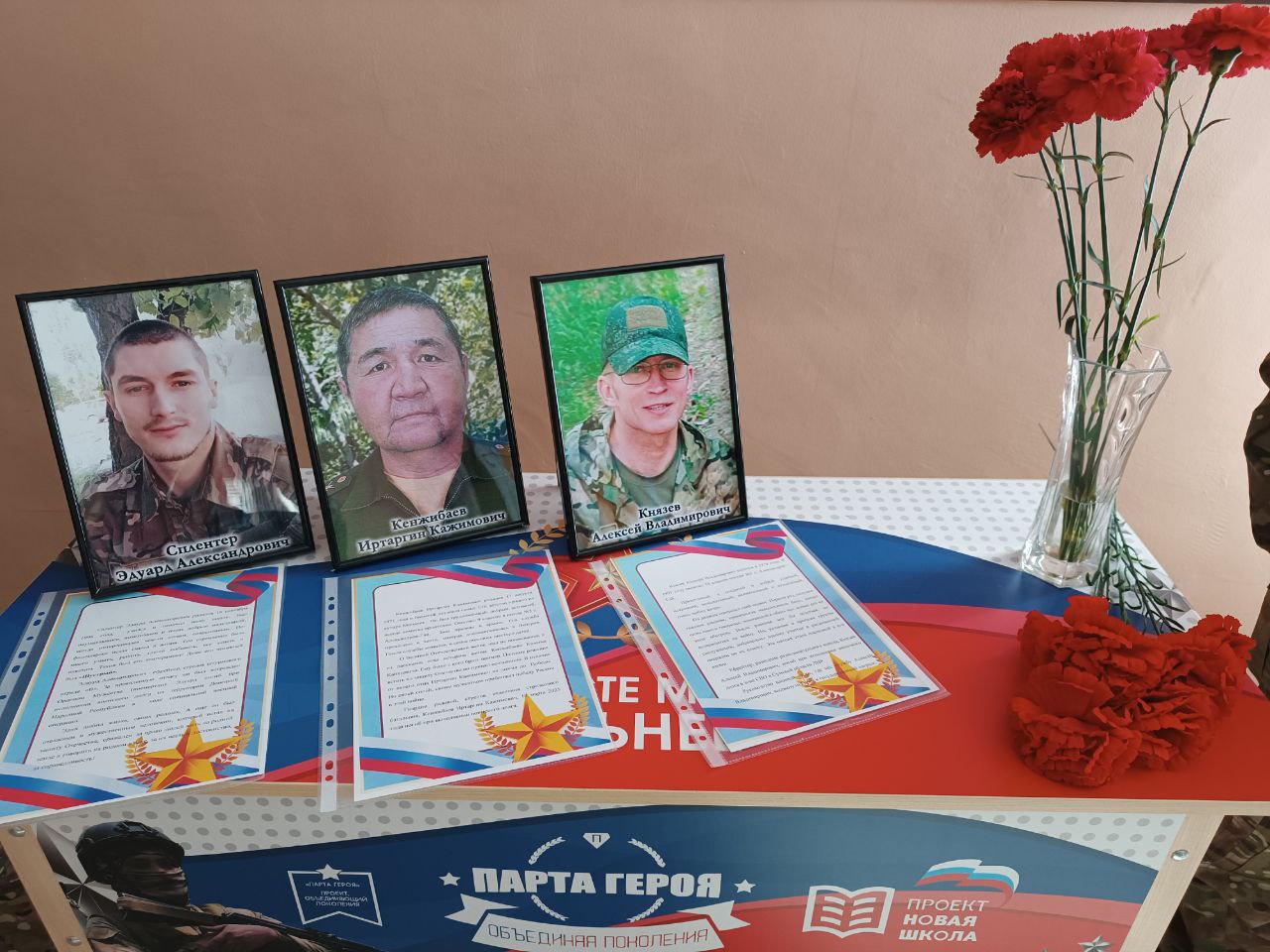 В этот же день в школе открыли «Парту Героя», на ней уже три фотографии — Иртаргина Кенжибаева, Эдуарда Сплентера и Алексея Князева. Вечная слава воинам!