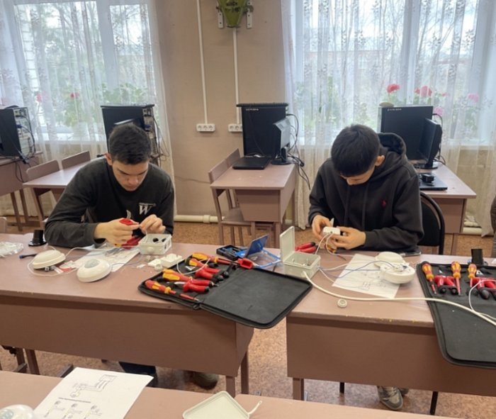 Параллельно в других мастерских лицея тоже кипела работа. Будущие электромонтёры под руководством Б.К. Джалмурзиновой знакомились с основами электротехники. Ученики учились не бояться тока, а подчинять его, монтируя и обслуживая электрические цепи.