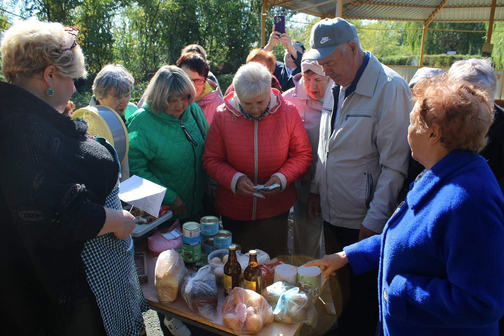 Первый пункт маршрута — магазин «Новинка», где участники развешивали ценники на товары советского периода: мыло хозяйственное, банку сгущенки, консервы «Бычки в томатном соусе», яйца и другие продукты, вызвав улыбки и воспоминания.