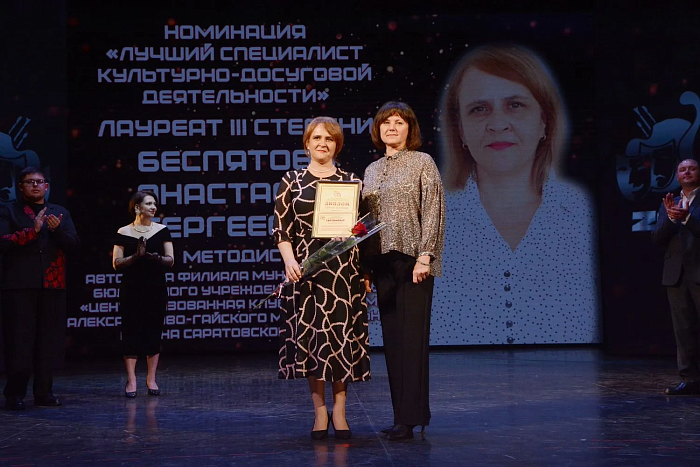 Поздравляем Анастасию Беспятову, методиста автоклуба Централизованной клубной системы Александрово-Гайского района, с высоким достижением! 15 апреля во Дворце культуры «Россия» объявили итоги престижного областного конкурса «Лучший клубный работник 2025 года». Среди 40 сильнейших специалистов из всех районов области Анастасия Сергеевна завоевала почётное III место в номинации «Лучший специалист культурно-досуговой деятельности»!