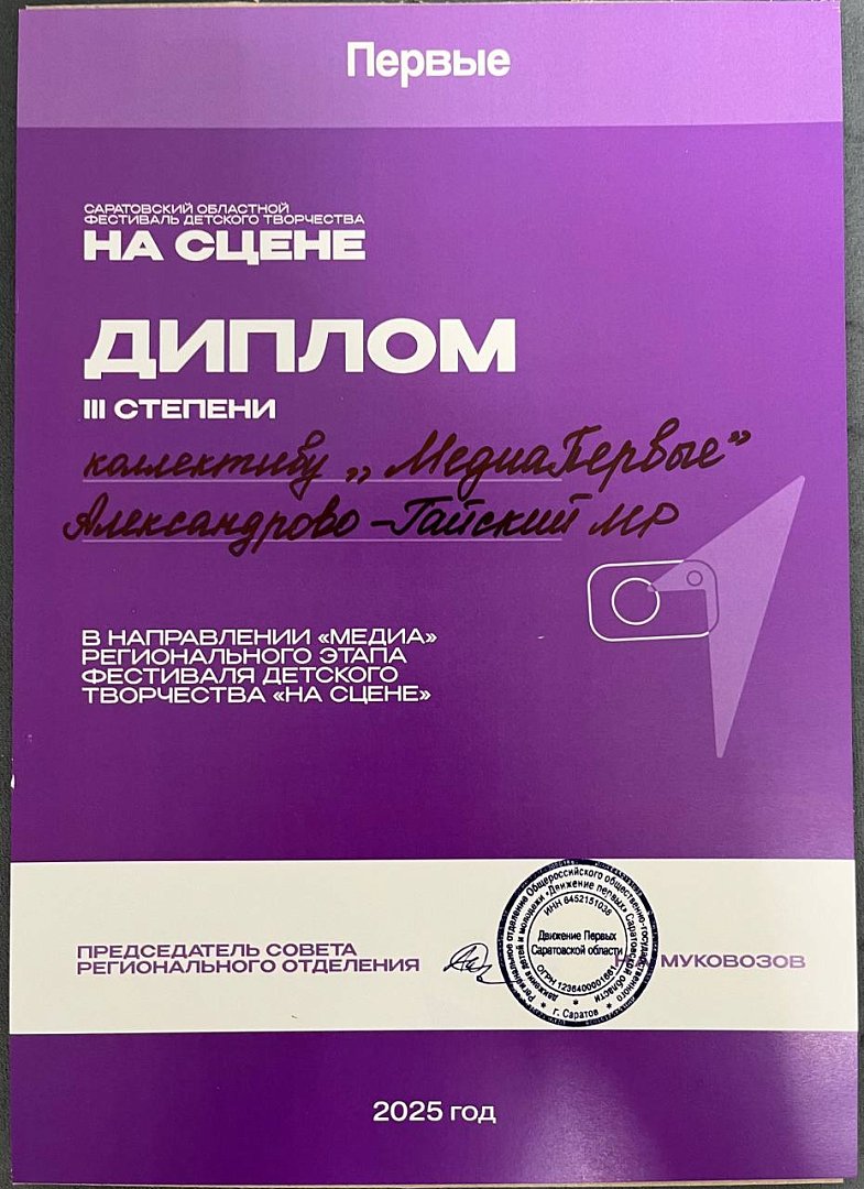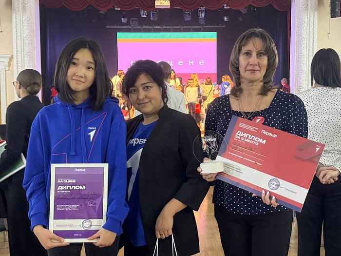 — Команда медиацентра школы №2 (участники Карина Темиралиева, Анжелика Даминова и руководитель Айнагуль Бугетаева) получила бронзу фестиваля «На сцене» в категории «Медиа».
