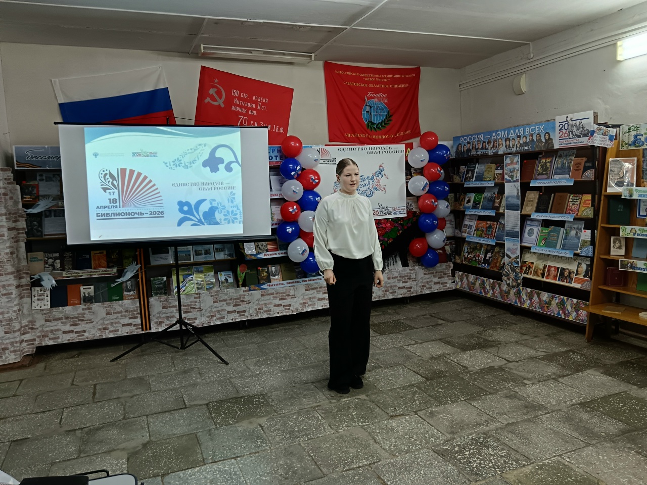 Ежегодная Всероссийская акция «Библионочь» уже давно стала доброй весенней традицией, объединяющей любителей книги и творчества по всей стране. В этом году Центральная библиотека Александров Гая присоединилась к масштабному событию, посвятив мероприятие теме многонационального единства России. Гостей вечера ждала насыщенная программа. В формате литературно-музыкальной композиции «Судьбой единой связаны навек» участники узнали, почему Россию называют многонациональной страной, познакомились с историей формирования великой державы — от древних времён до современности. Особое внимание уделили культурному многообразию и традициям народов, населяющих нашу Родину. В течение вечера звучали музыкальные номера в исполнении артистов Районного дома культуры и преподавателей Детской школы искусств. Прозвучал проникновенный рассказ Ю. Яковлева «Лебедь Борька» в исполнении Дарьи Гавришевой, который затронул вечные темы дружбы и верности.