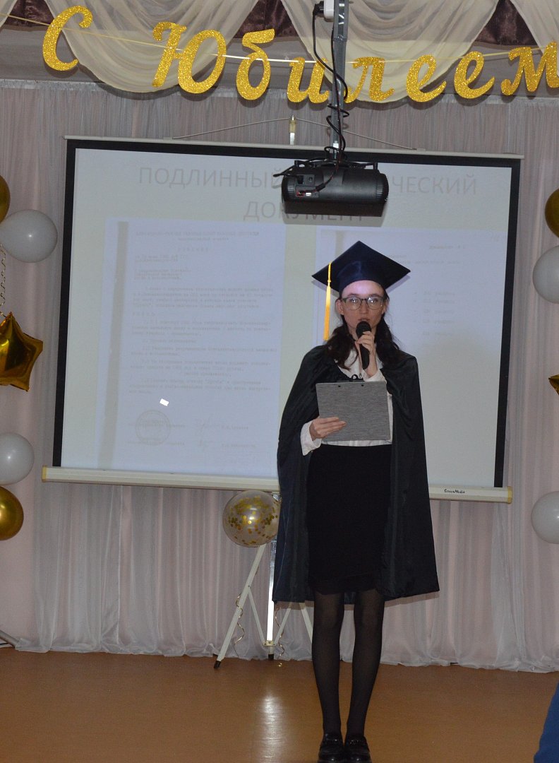 Д. Койшигалиев и И.Труфанова. Красиво украшенный зал настраивал на особое настроение, а ведущими вечера стали директор школы Н.В. Бирюкова и специально приглашённый гость — знаменитый российский поэт, прозаик и журналист Е.А. Грачев.Они погрузили собравшихся в историю школы.