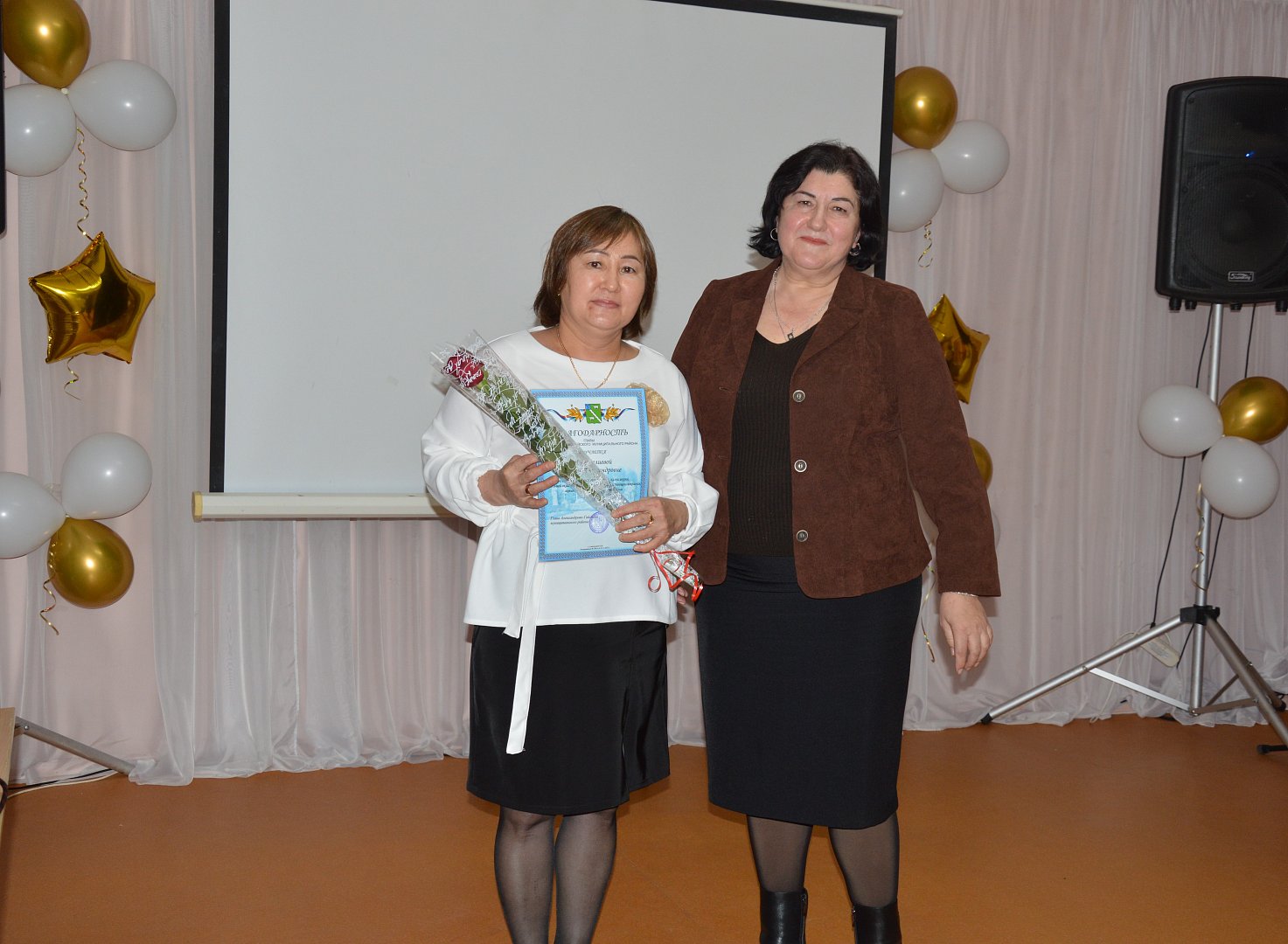 В этот день Благодарность главы района «За активное участие в общественной жизни школы и за большой вклад в обучение и воспитание подрастающего поколения» вручили: С.А. Масляковой, А.Т. Умбеткалиевой, А.С. Мусагалеевой, О.В. Стрекозовой, И.А. Ишангалиевой, А.И. Быльшикбаеву, П.А. Кондрашову, Е.И. Крохмальне, О.В. Касимовой.