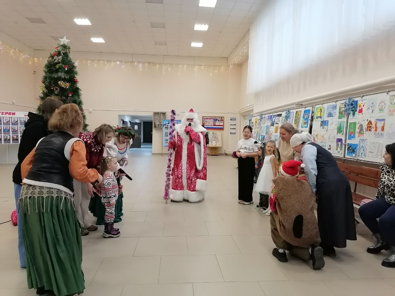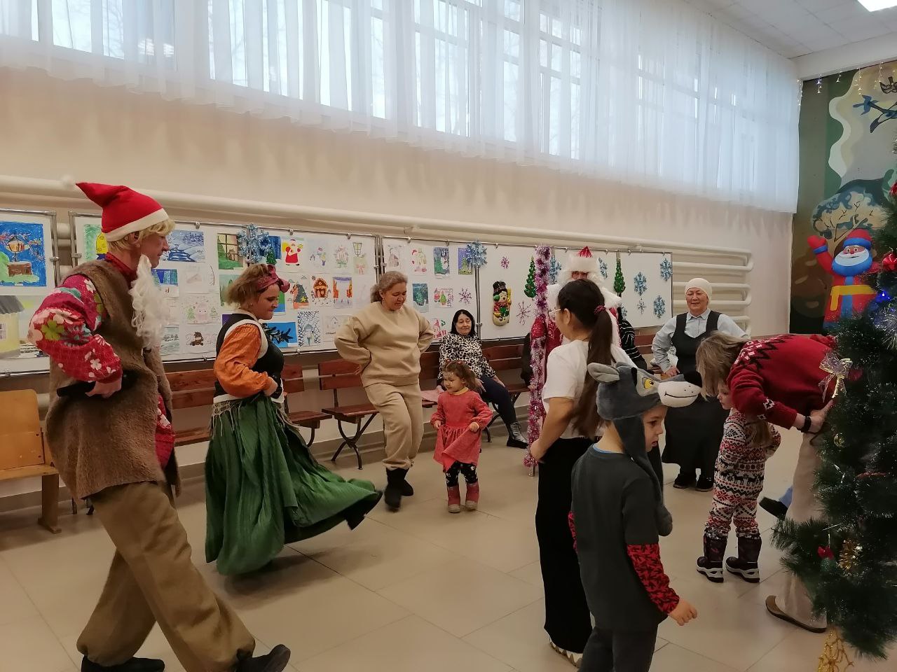 Харизматичные Леший (Дмитрий Айткалиев) и озорная Баба Яга (Анастасия Беспятова), поддавшись атмосфере зимнего волшебства, перешли на сторону добра и вместе с дедом Морозом и Снегурочкой, их роли убедительно сыграли соответственно Юрий Беспятов и Марина Дубровская, играли с детворой и их родителями в игры, водили хороводы, пели песни, разгадывали загадки. Помогала сказочным героям Олесья Тасбекова, исполнившая роль Феи.