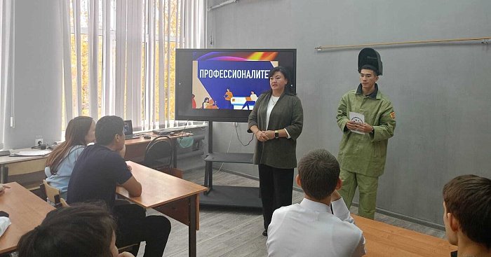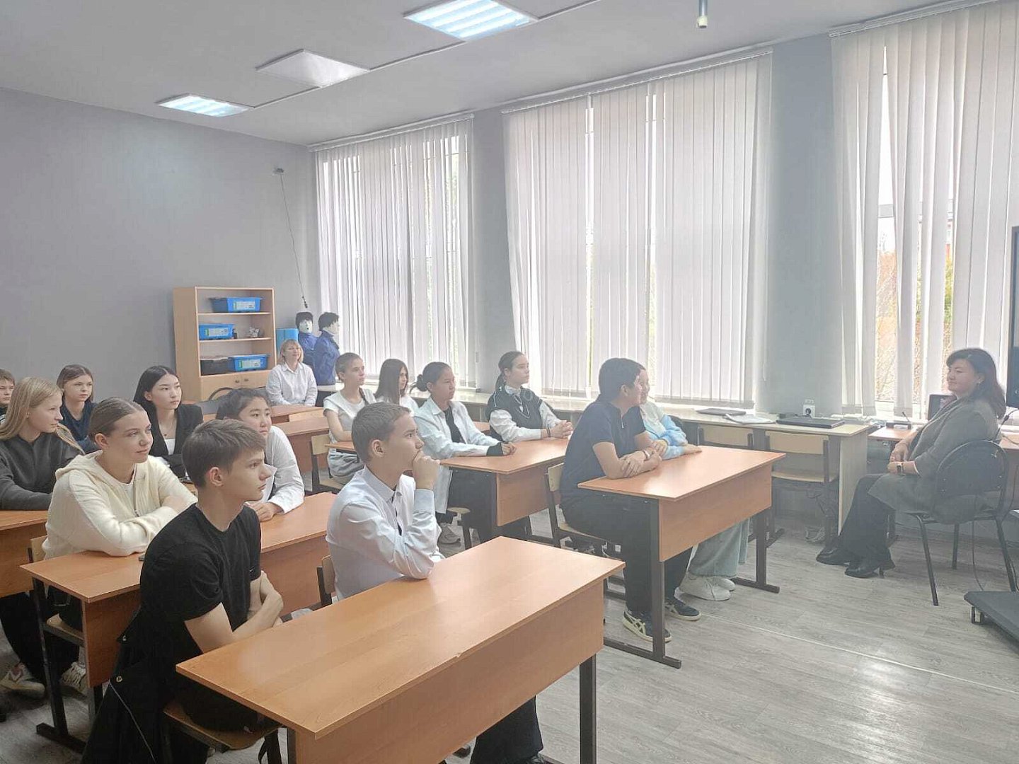 Альбина Сериковна подробно рассказала учащимся о специфике программы «Профессионалитет»: её отличительной чертой является укороченный период обучения, что позволяет студентам быстрее приступить к трудовой деятельности.