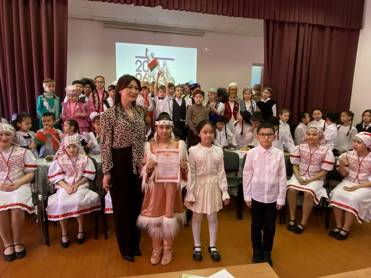 Сегодня, 26 февраля, в школе №1 состоялся первый этап фестиваля «Дружба народов», объединивший учеников 2–5 классов и посвященный Году единства народов России. Каждый класс ярко представил культуру разных народов: учащиеся продемонстрировали богатство традиций казахов, чувашей, русских, узбеков, удмуртов, евреев, азербайджанцев, та-тар, белорусов и молдаван. Самобытность каждой национальности проявилась в ярких ко-стюмах, созданных родителями, народных песнях и танцах, исполненных учениками.