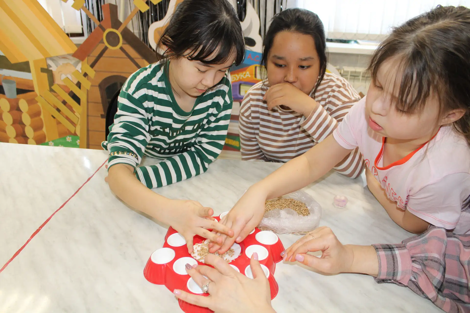 В преддверии Светлого праздника Пасхи в Комплексном центре социального обслуживания населения Александрово-Гайского района для детей и взрослых были организованы увлекательные творческие занятия. Специалисты центра подготовили мастер-классы, направленные на развитие творческих способностей, мелкой моторики и воспитание уважения к народным традициям. В кружке «Затейник» отделения помощи семье и детям, под руководством Оксаны Брежневой состоялся мастер-класс по созданию пасхальной композиции. Для работы использовались простые и экологичные материалы: яичная скорлупа, ватные диски, вода и пшеница. Каждый участник смог проявить фантазию, украшая скорлупу по своему вкусу. Особенность композиции — пророщенная пшеница, которая через несколько дней превращается в зелёный «газончик» внутри скорлупы. Такие поделки становятся не только украшением праздничного стола, но и символом обновления и весеннего настроения.