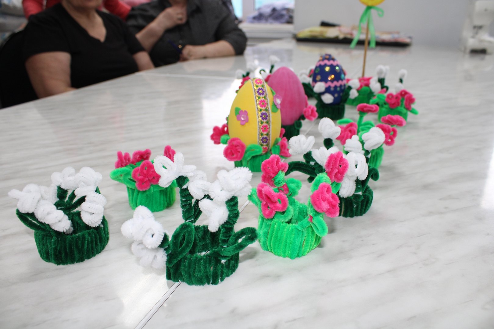 В творческой мастерской «Доброцентр» участники клуба под руководством специалиста по социальной работе Наталии Голубковой освоили технику изготовления подставки-корзинки для пасхальных яиц из синельной проволоки. Этот мягкий и податливый материал позволил создать яркие, оригинальные изделия, которые станут прекрасным дополнением к праздничной сервировке.