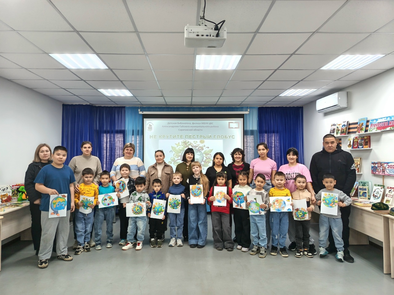 В библиотечном центре «Семья» прошло необычное мероприятие для самых юных читателей. Старшая группа детского сада «Малыш» вместе с родителями и воспитателем Ольгой Избасаровой отправилась в увлекательное путешествие вокруг света, не покидая стен библиотеки. "Экскурсовод" Тамара Калдузова провела игровую программу «Информина» под названием «Не крутите пёстрый глобус» превратив привычное пространство в настоящий портал в мир знаний и чудес.