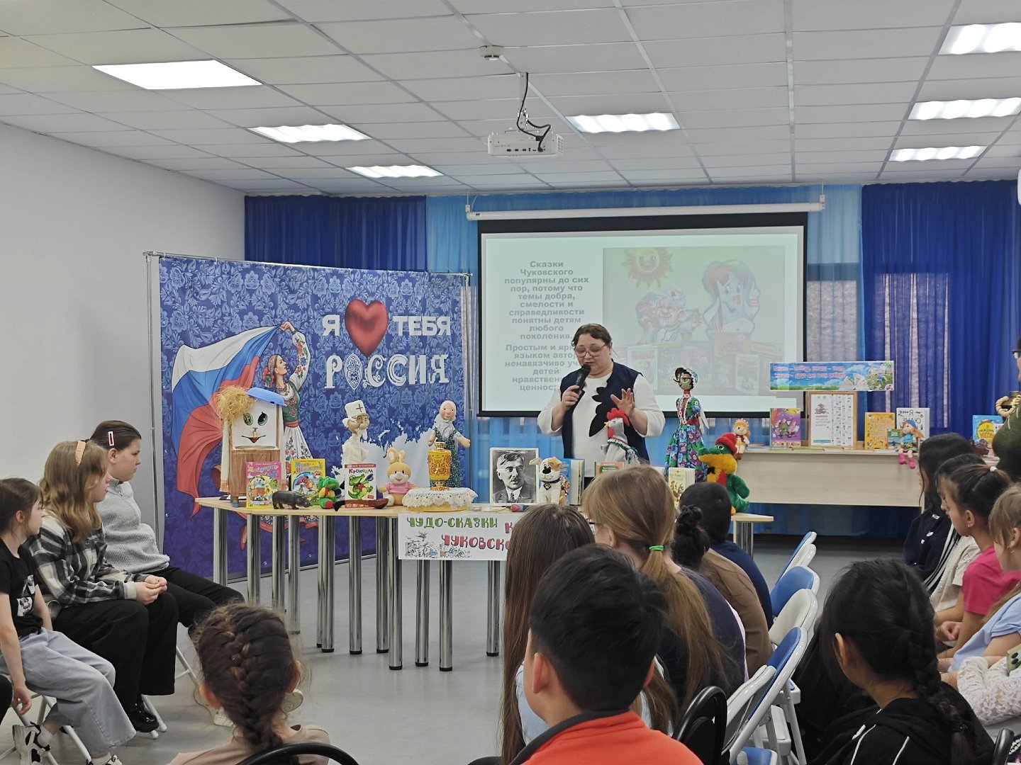 В рамках мероприятия состоялась интерактивная викторина «Дедушка Корней приглашает всех друзей», объединившая участников разных возрастов. Дети и взрослые с удовольствием читали вслух стихи, вспоминали рифмы и дополняли знакомые строки. Презентация познакомила гостей с интересными фактами из жизни писателя: как появился его знаменитый псевдоним и как создавались первые сказки.