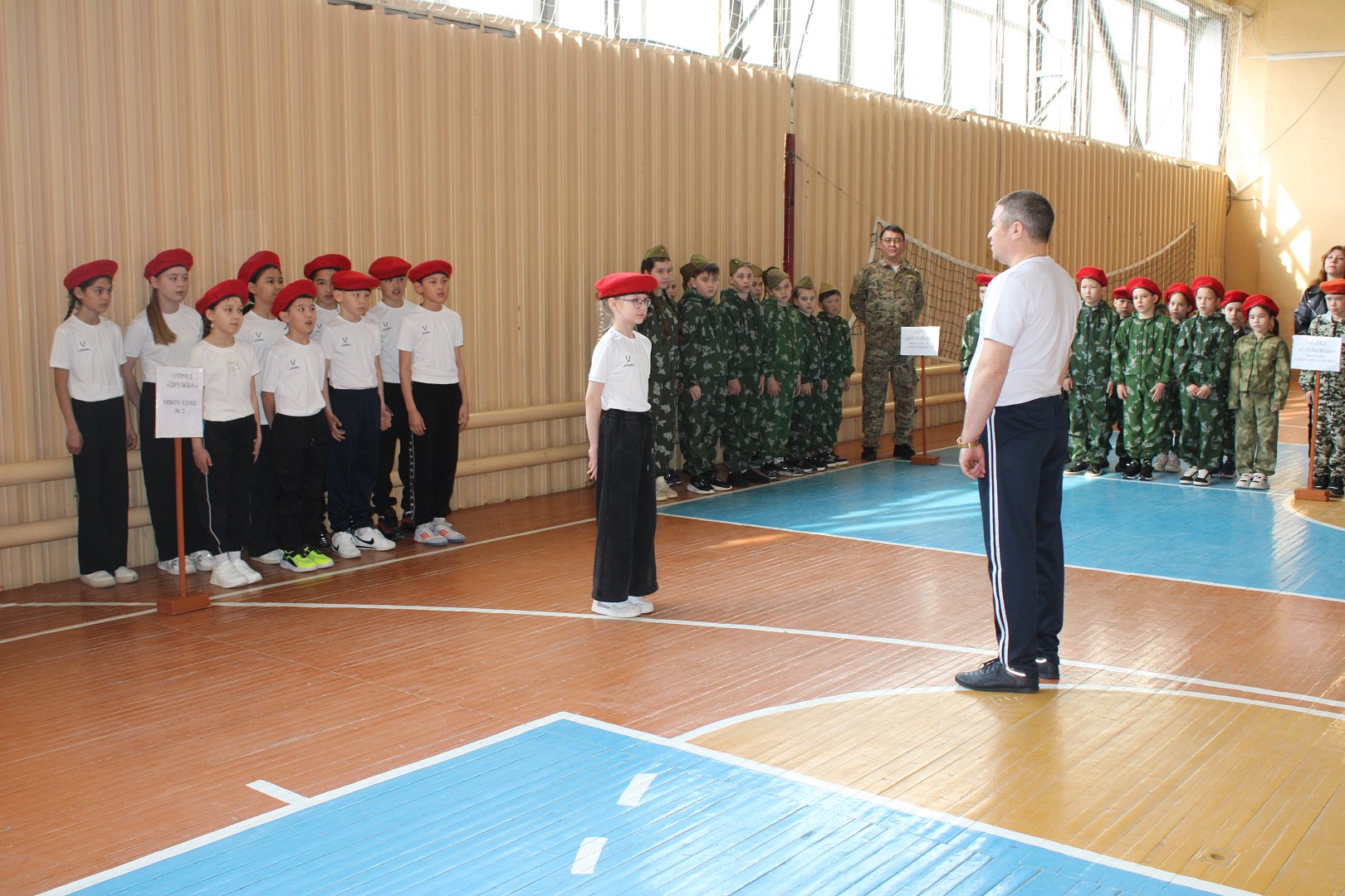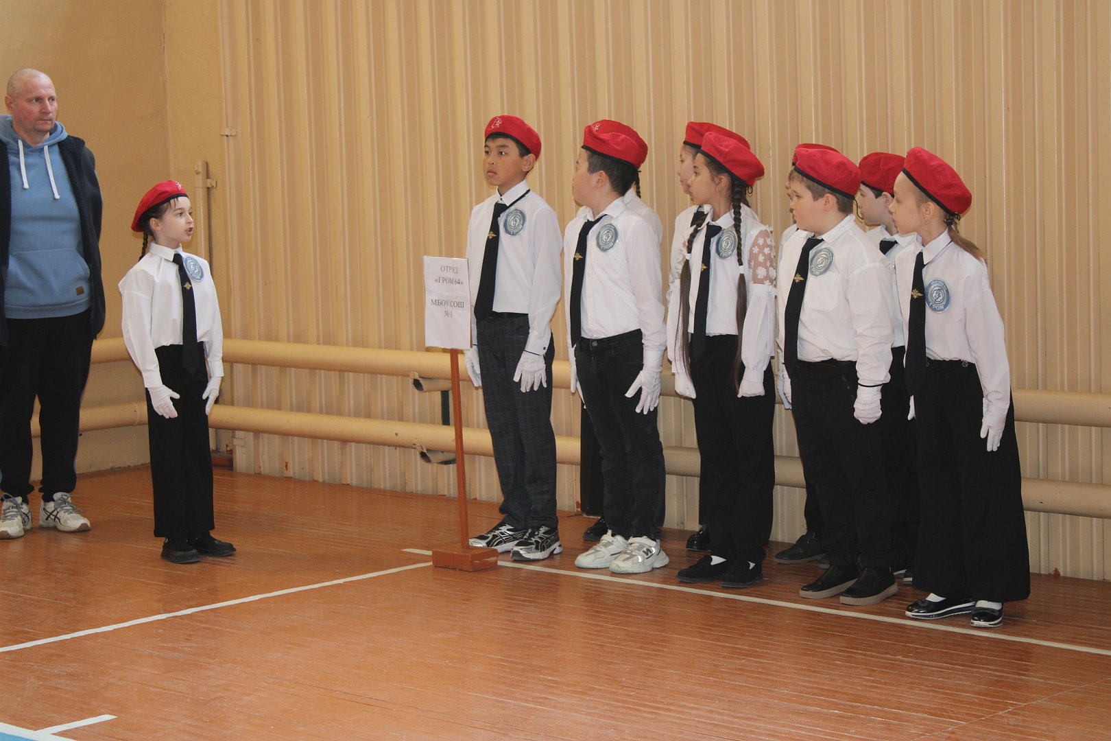 На импровизированном плацу в спортивном зале собрались шесть команд: школ сёл Александров Гай (школу №3 представляли 2 команды), Новоалександровки и Луков Кордона. Мальчишки и девчонки выглядели серьёзно и сосредоточенно, облачённые в единую форму, готовые доказать своё мастерство и командный дух.