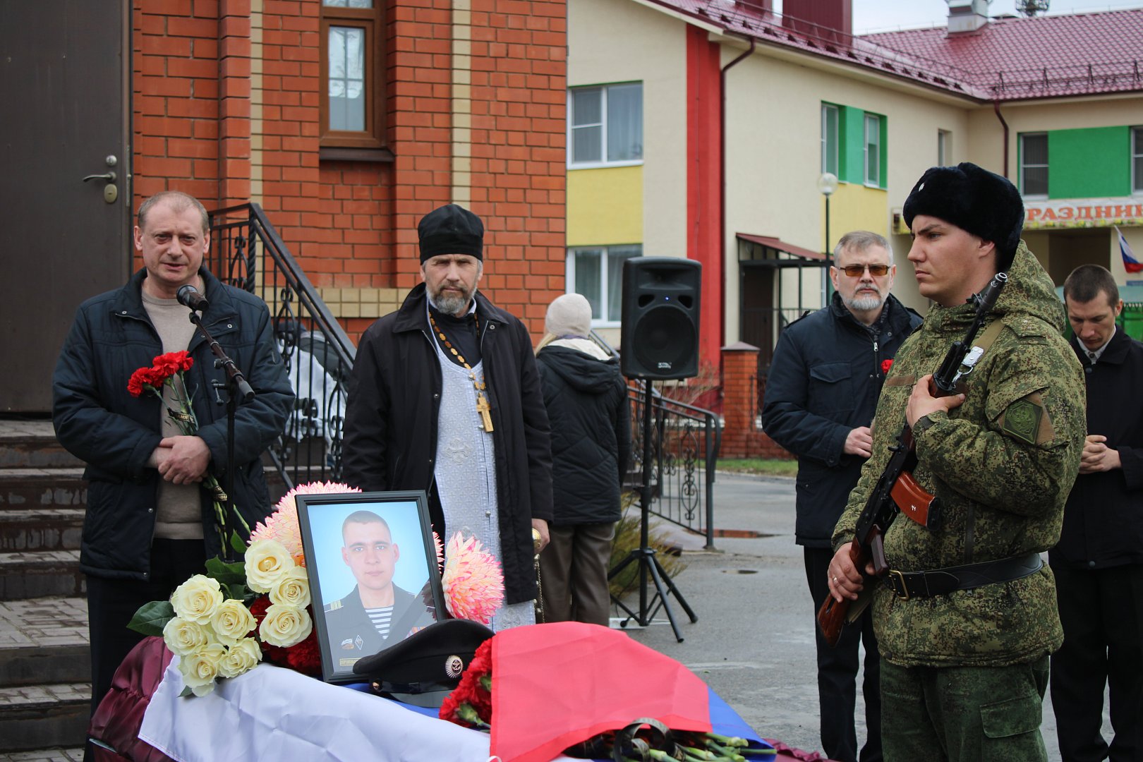 Свои слова соболезнования семье и близким бойца также выразили представитель правительства О.И. Перевёртов, глава района С. Ю. Зюзин, настоятель храма Казанской иконы Божьей Матери отец Сергий.