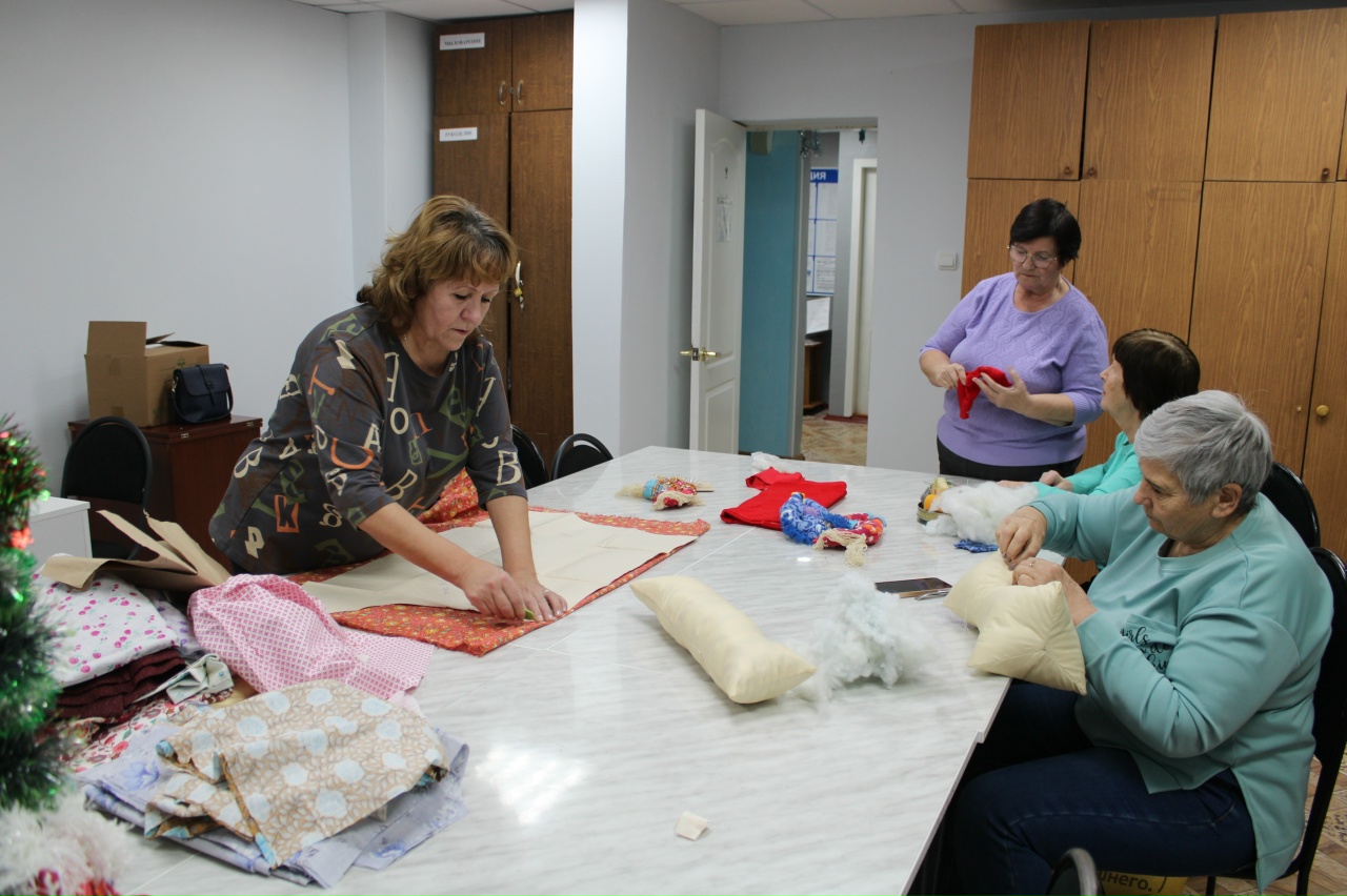 Работа в швейной мастерской «Шьем для СВОих» при центре социального обслуживания Александрово-Гайского района активно продолжается. Опытные мастерицы-волонтеры занимаются пошивом необходимого инвентаря для нужд нашей армии.Особое внимание уделяется изготовлению нательного белья, теплого белья из флиса и одеял, которые обеспечивают комфорт и тепло солдатам в сложных условиях службы. Дополнительно изготавливаются ортопедические подушки, специально предназначенные для отправки в военные госпитали, обеспечивая дополнительное удобство и облегчение больным и раненым бойцам.